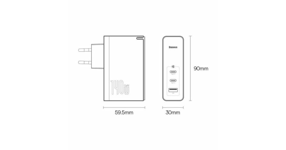 Încărcător de perete Baseus GaN5 Pro 2xUSB-C / USB / 140W Descriere