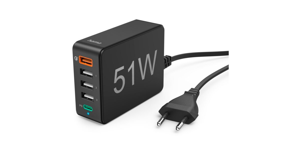 Hama 201630 FIC 3 51W 5 PORT (1xQC3.0, 3xUSB-A, 1xUSB-C PD) Netzladegerät (201630)