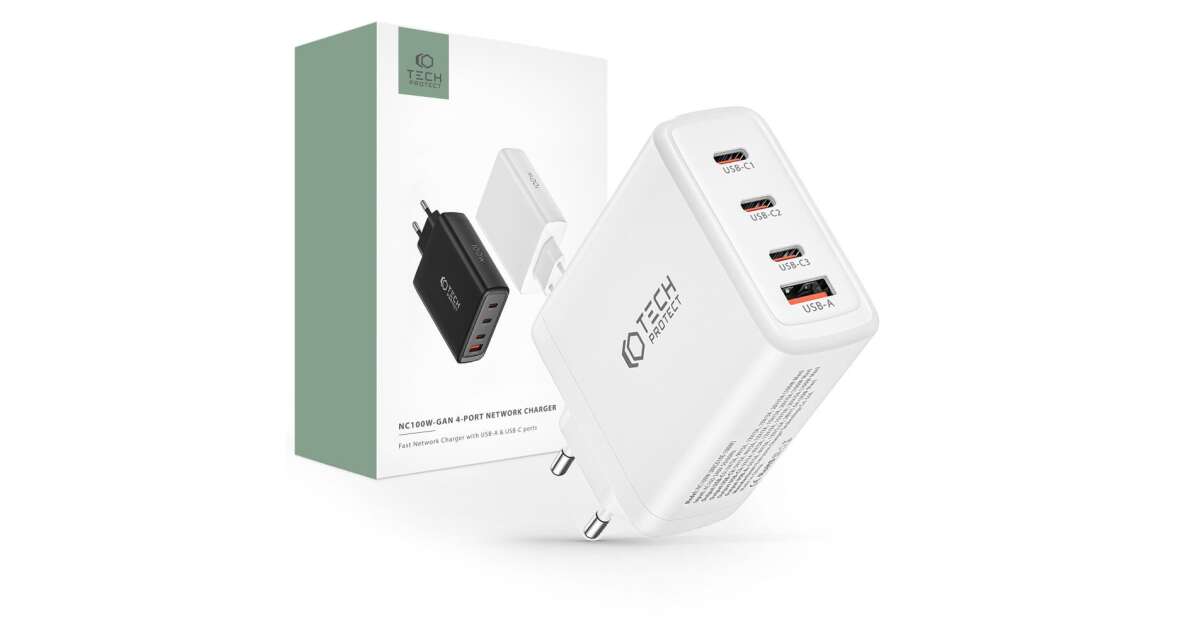 Încărcător Tech-Protect GaN cu 4 porturi: Putere de încărcare rapidă de 100W ⚡