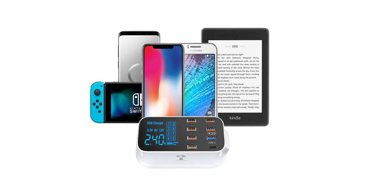 Încărcător USB cu 8 Porturi, QC 3.0 și Conector Type-C - cu Display LED 40W