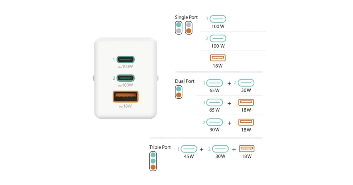 - Putere de 100W: Încărcați mai multe dispozitive simultan la putere maximă.