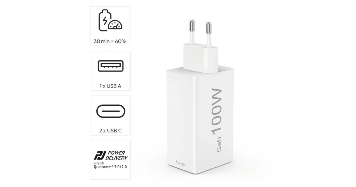 Cu Hama Mini Încărcătorul de Rețea GaN de 100W, veți avea întotdeauna dispozitivele încărcate, indiferent unde vă aflați! 👍