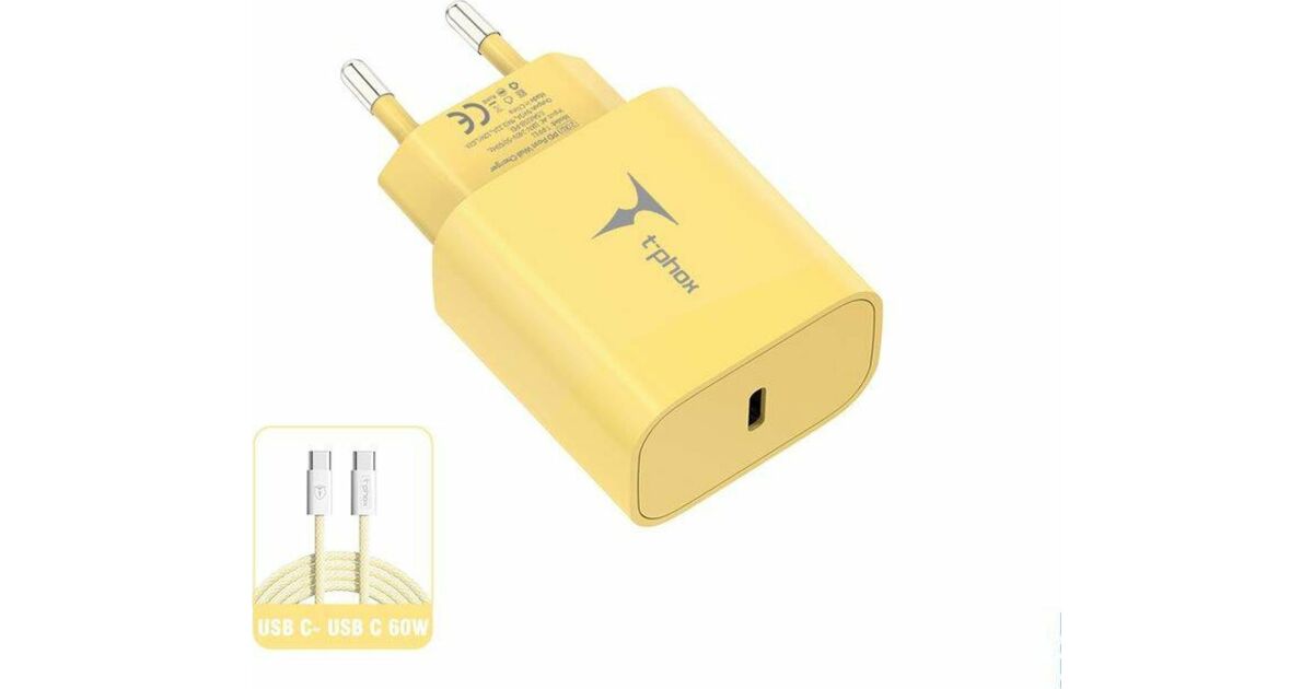 REȚEA DE REȚEA T-PHOX SERIE MODERATĂ T-PP11 20W +CABLU USB-C/USB-C 60W GALBEN Descriere