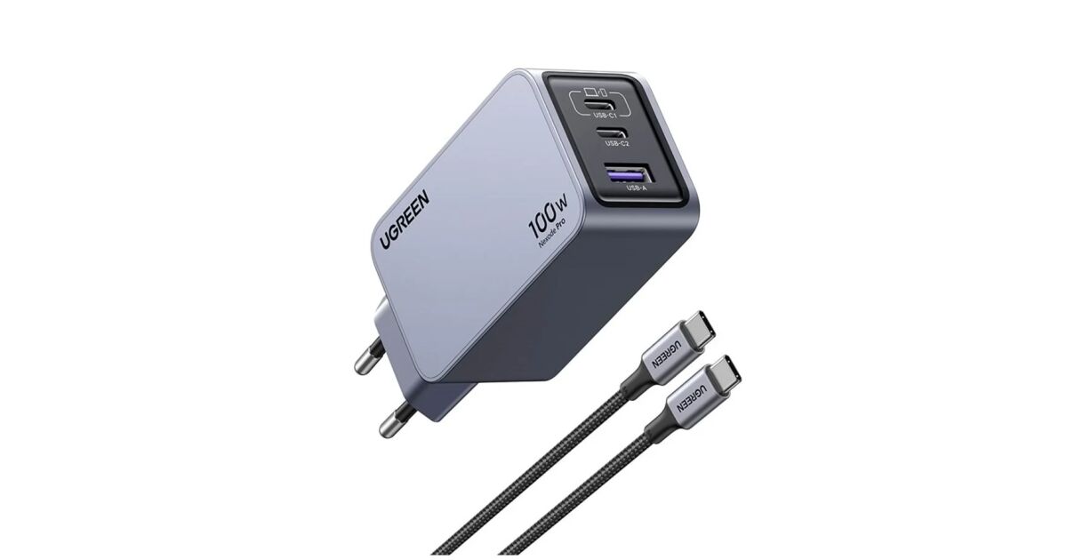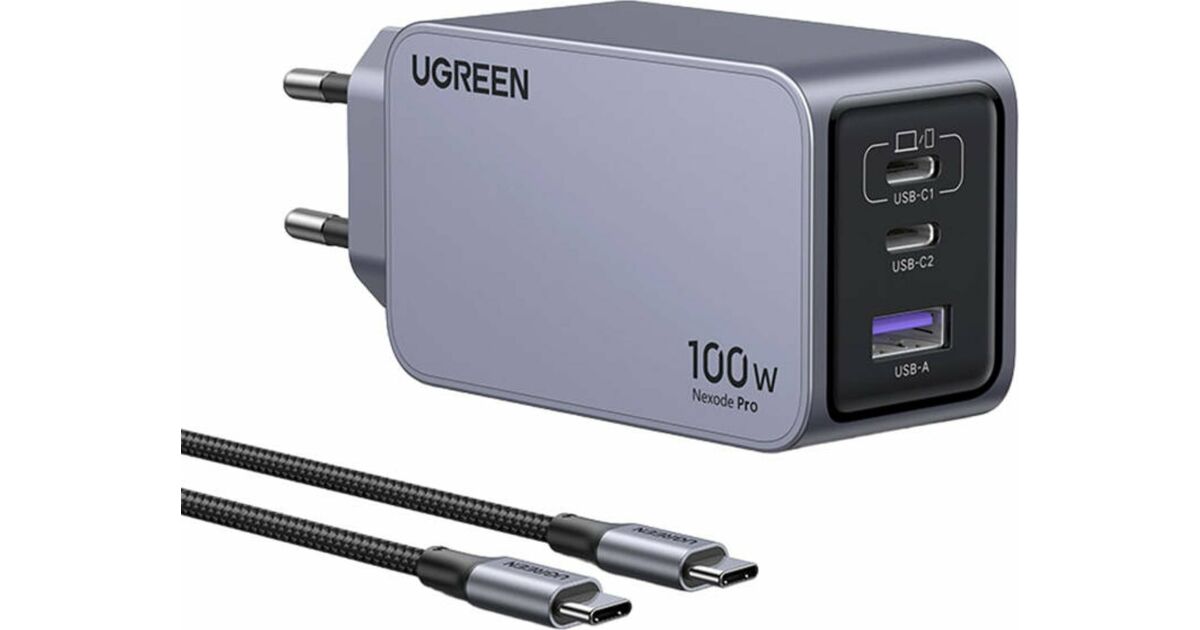 - Încărcătorul Ugreen Nexode Pro de 100W cu 3 porturi