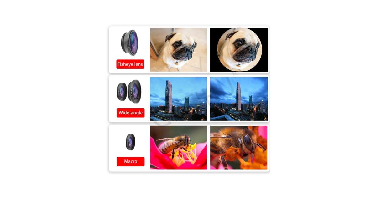 Set kit lentile foto obiectiv universal profesional 3 in 1, Getihu, Wide, Fisheye, Zoom si Macro pentru telefon si tableta, gold Descriere