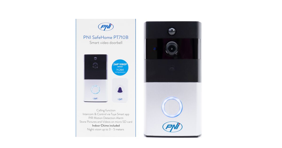 Interfon video inteligent PNI SafeHome PT710B WiFi HD, P2P, acumulator si Sonerie 36 melodii inclusa, aplicatie dedicata Tuya Smart, integrare in scenarii si automatizari smart cu alte produse compat