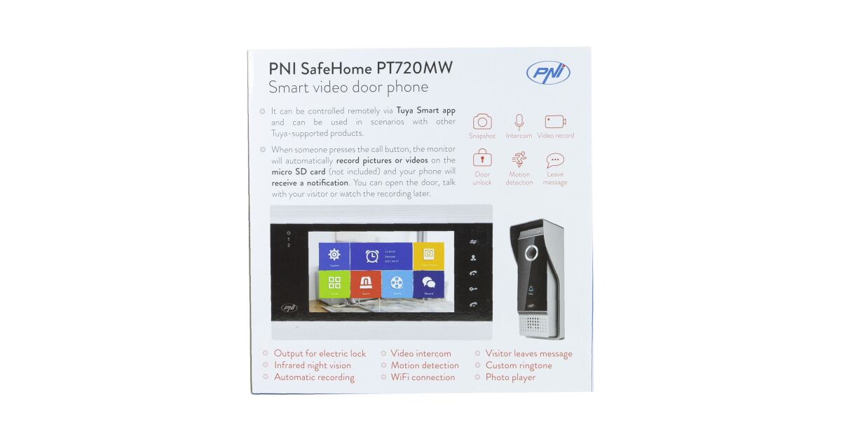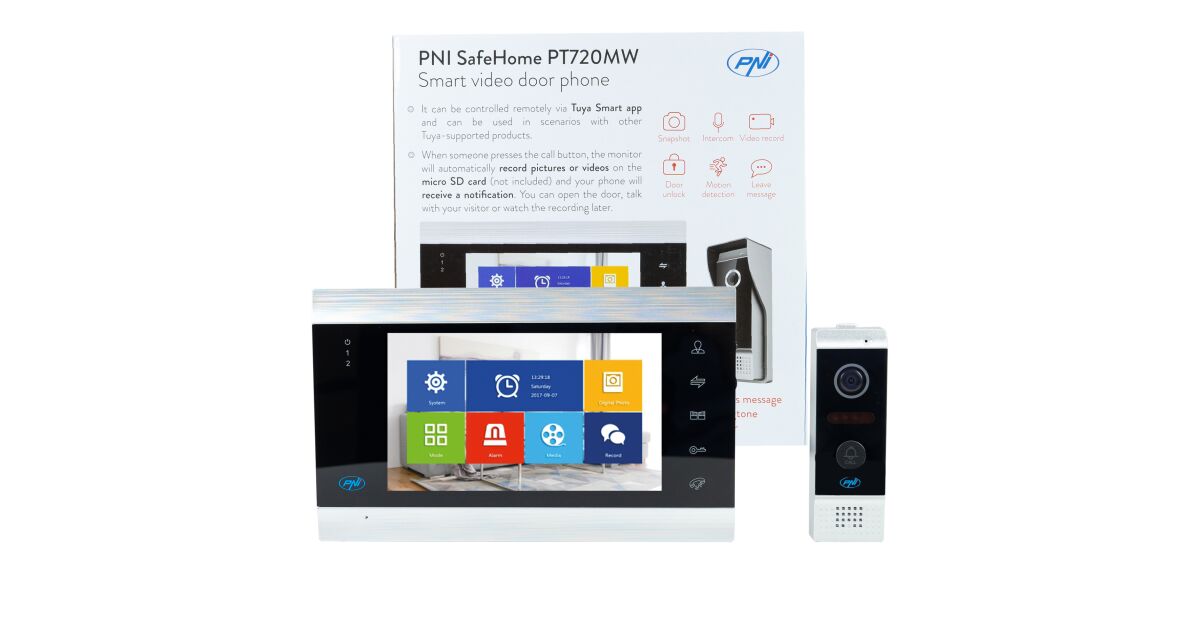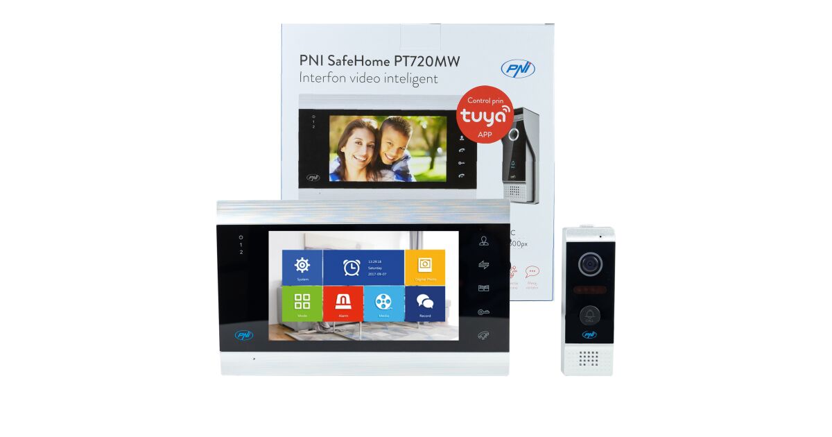 Interfon video inteligent PNI SafeHome PT720MW WiFi HD, P2P, monitor interior, aplicatie dedicata Tuya Smart, integrare in scenarii si automatizari smart cu alte produse compatibile Tuya