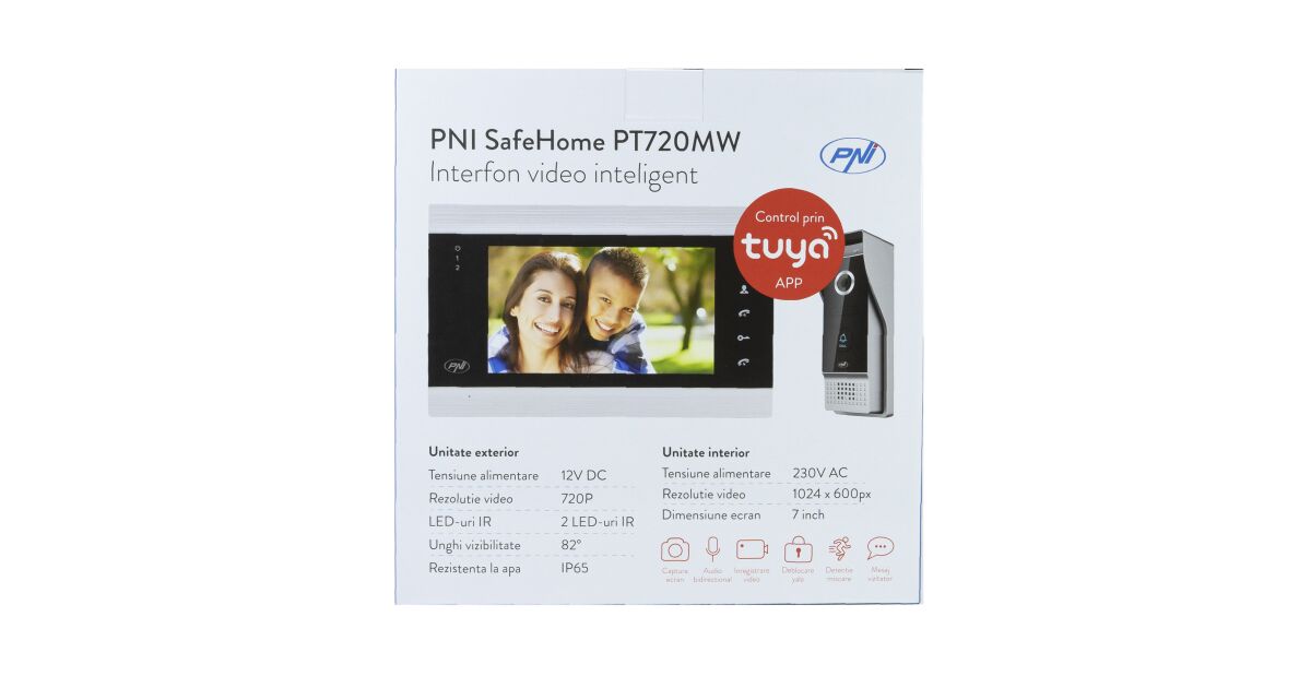 Interfon video inteligent PNI SafeHome PT720MW WiFi HD, P2P, monitor interior, aplicatie dedicata Tuya Smart, integrare in scenarii si automatizari smart cu alte produse compatibile Tuya Descriere