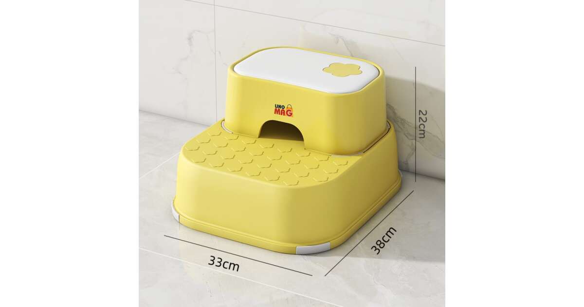 Scaunel Inaltator pentru Copii 2 in 1 cu Doua Trepte Linomag®, Multifunctional, pentru WC, Baie si Bucatarie, Galben / Alb Descriere