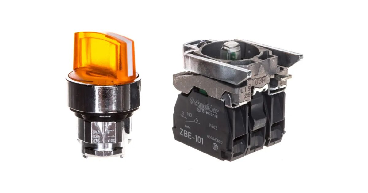 Comutator 2 poziții buton 22mm portocaliu 1Z 1R fără revenire automată XB4BK125B5 Descriere