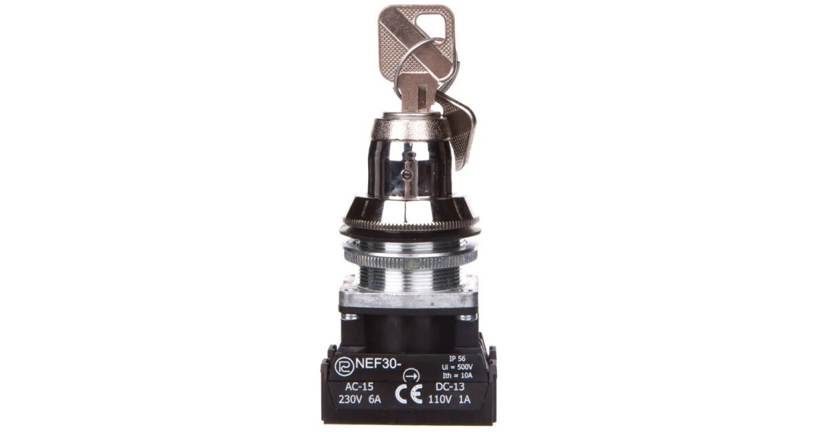 Comutator cu două poziții instabil cheie 30mm argintiu 1Z 1R fără revenire automată NEF30TZbM (W0-NEF30-TZBM XY) Descriere