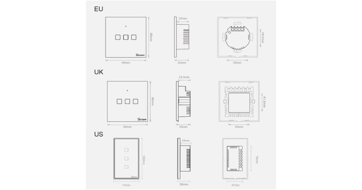 Comutator Sonoff pentru ecran tactil WiFi + T0 EU TX (3 canale) Descriere