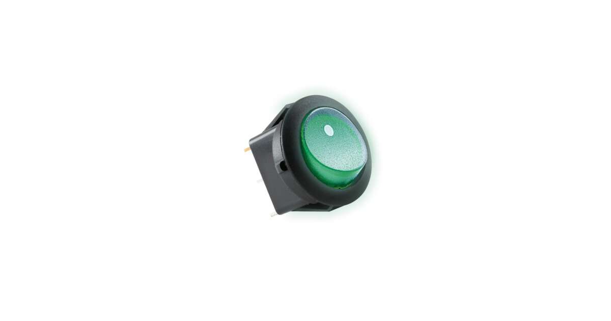 Comutator basculant iluminat AKV 12, 1 circuit - 2 pozitii, 12 V, verde, rotund