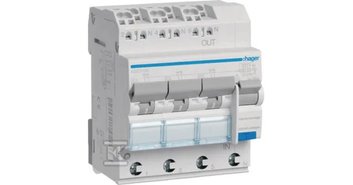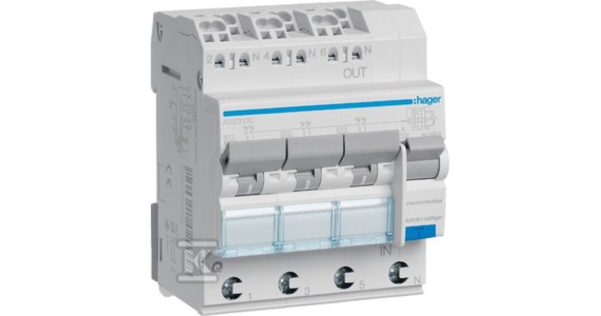 Întrerupător de curent rezidual Hager 3x1P+N B 13A 0,03A Tip A 6kA RCBO (ADZ313D) Descriere