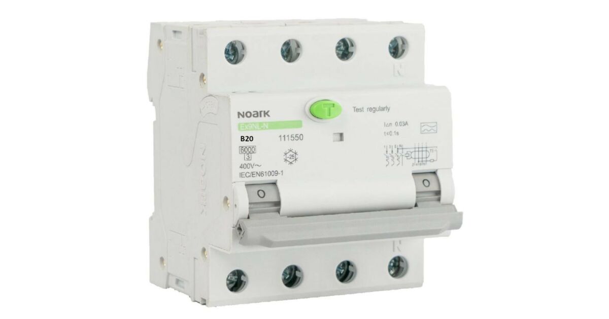 Întrerupător de supracurent rezidual trifazat RCBO B20 (B 20A) + 30mA AC Tip 3 poli 4P (230V AC) 4 Modular Noark Descriere