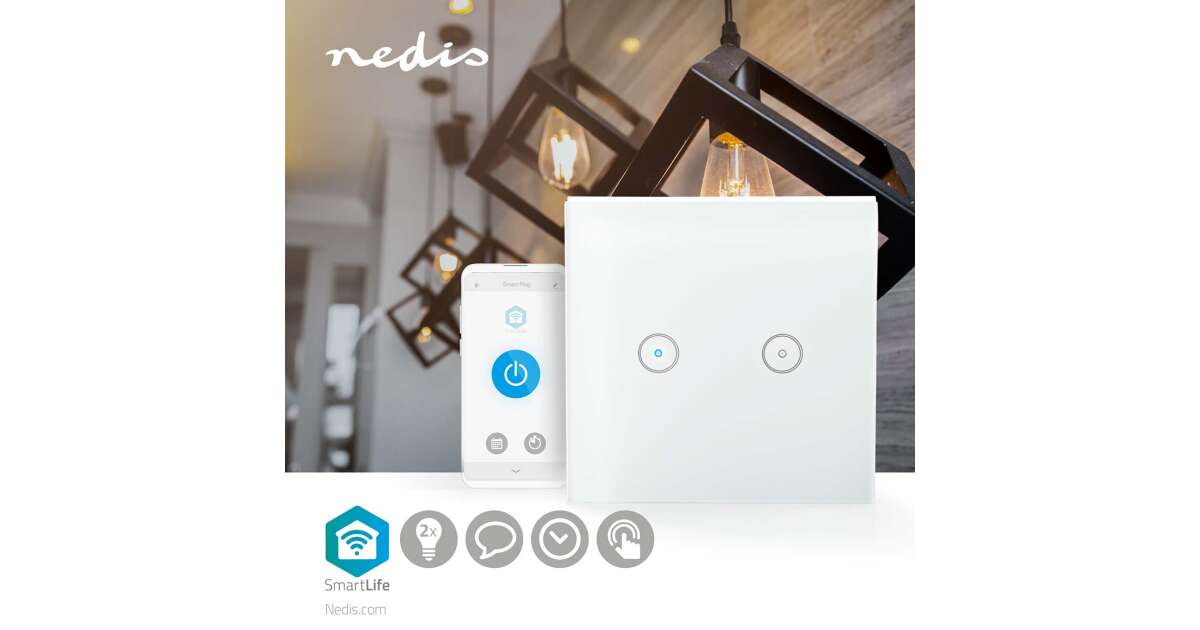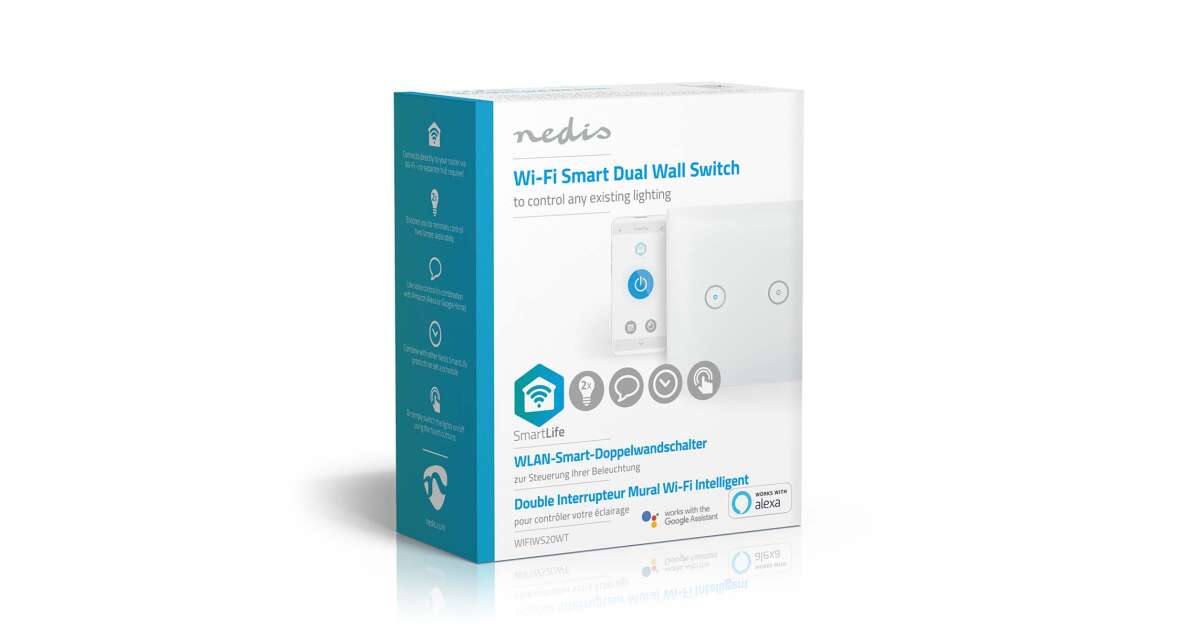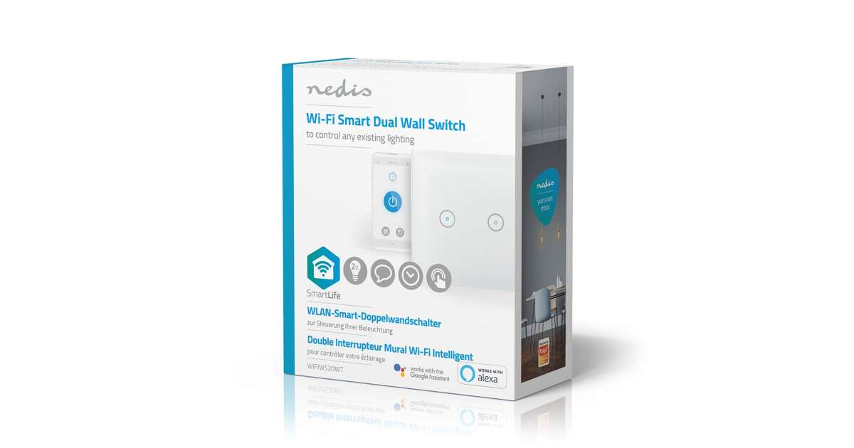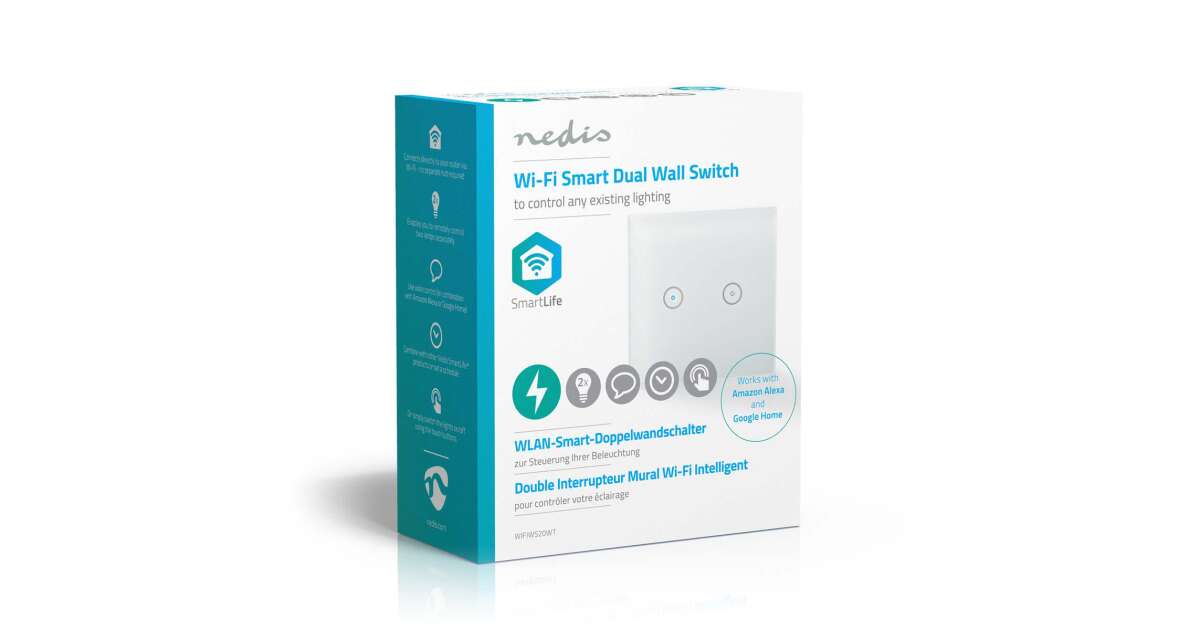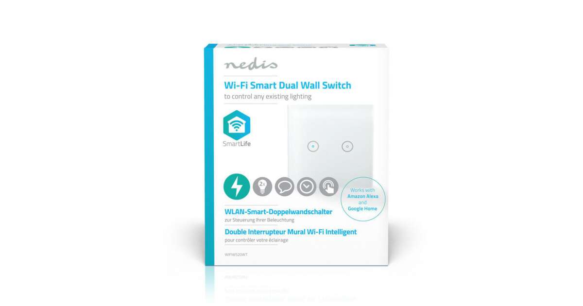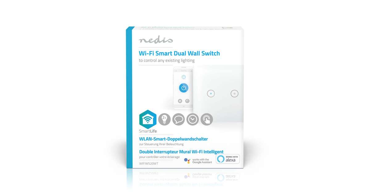 -Întrerupător de lumină inteligent Nedis WiFi dublu (WIFIWS20WT) Descriere