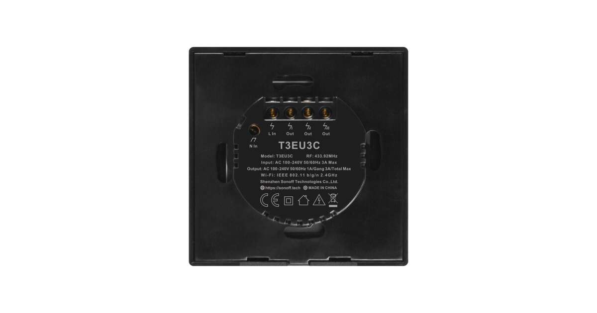 Acest comutator tactil inteligent Sonoff TX T3 EU este alegerea perfectă dacă ești în căutarea unei soluții inteligente și elegante pentru a controla iluminatul casei tale. Are un panou frontal elegant din sticlă neagră și poate fi integrat cu ușurință în sistemul tău electric existent. Datorită WiFi-ului încorporat, poți controla luminile de oriunde prin intermediul telefonului tău, putând seta chiar și temporizări.