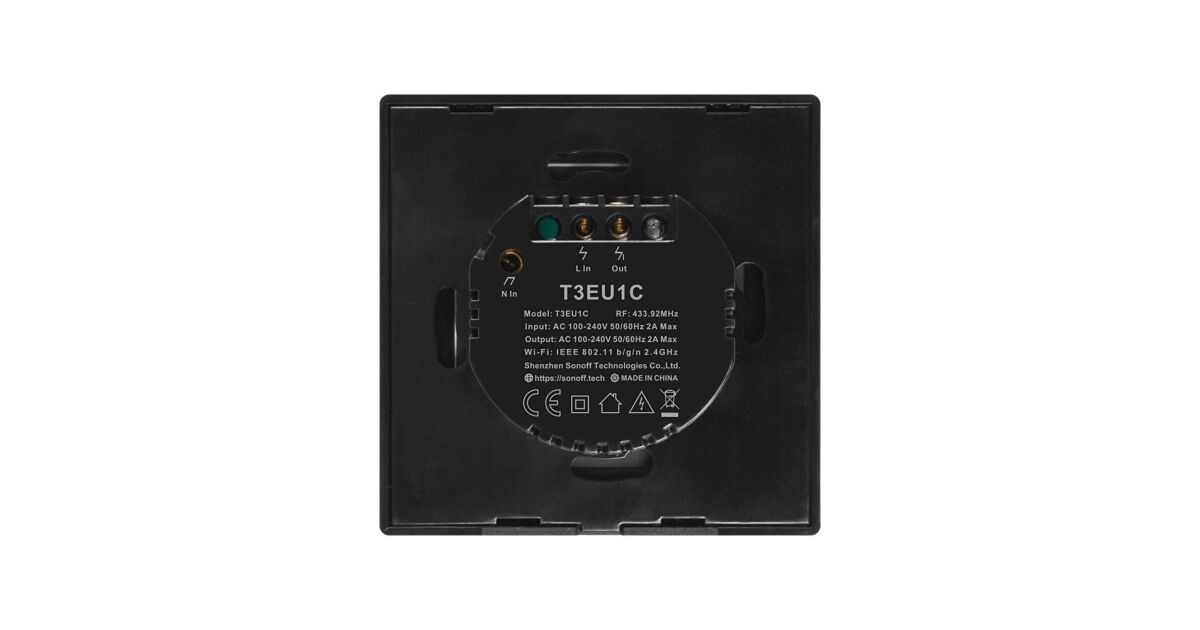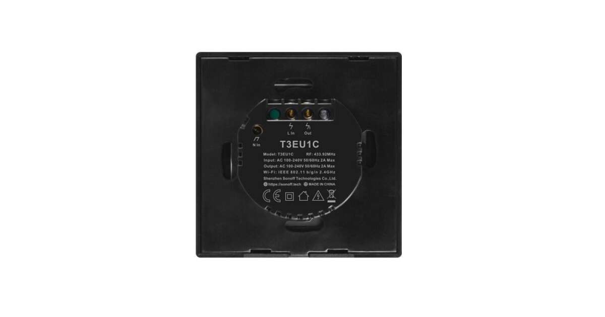 Intrerupator simplu smart, sticla securizata neagra, montaj in doza, compatibil Alexa si Google Assistant, Sonoff Descriere