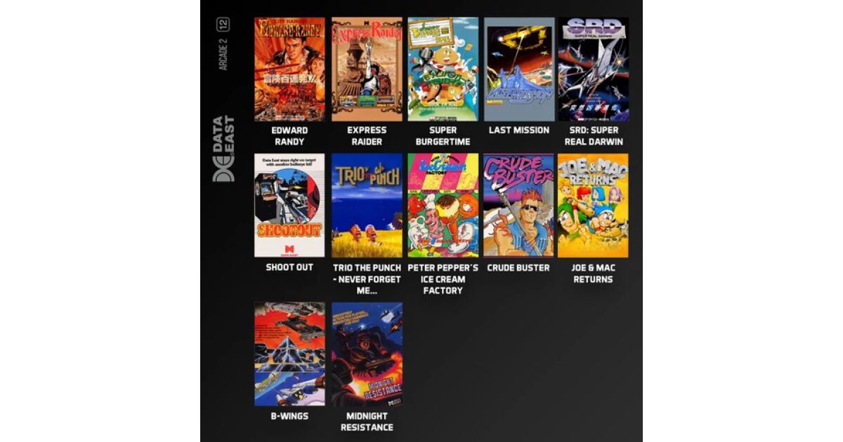 Evercade A12, Data East Arcade 2, 12 în 1, Retro, Jocuri multiple, Pachet software pentru jocuri Descriere