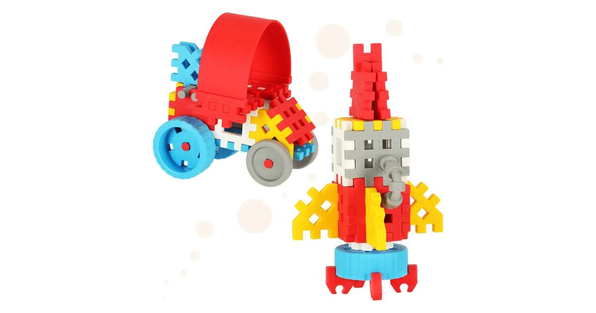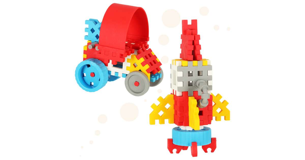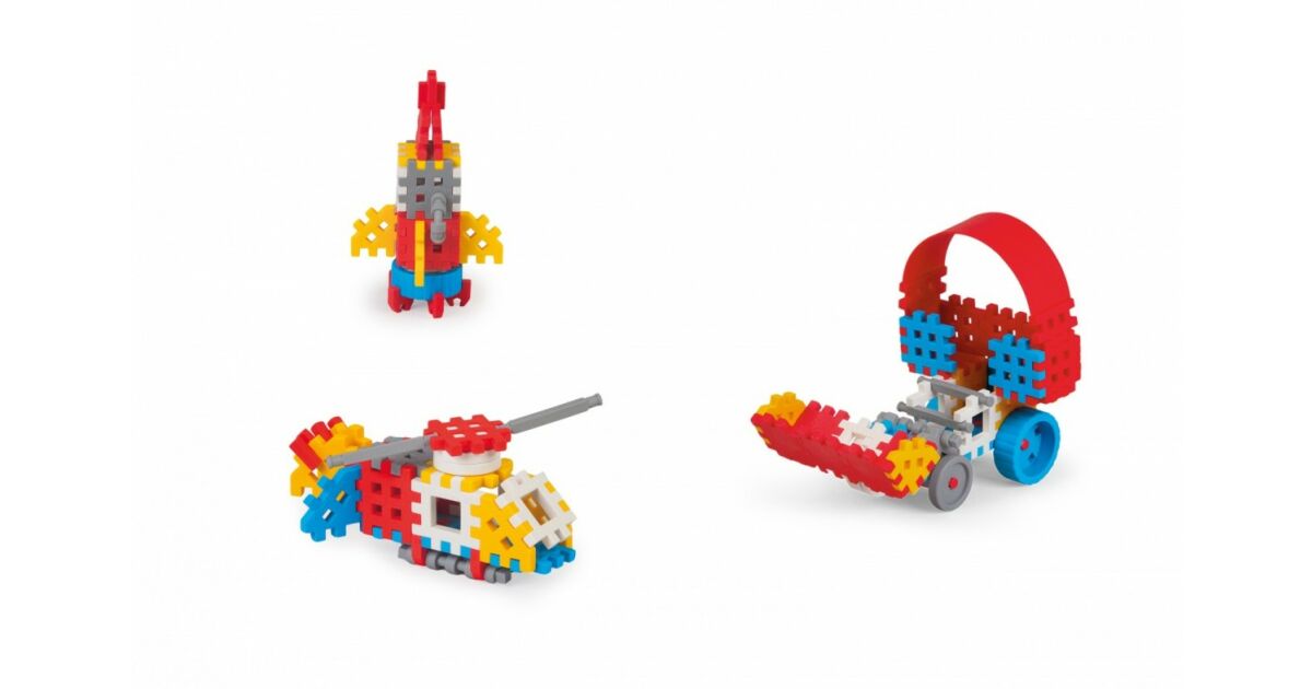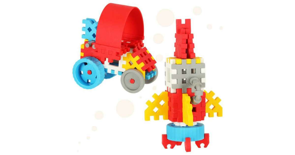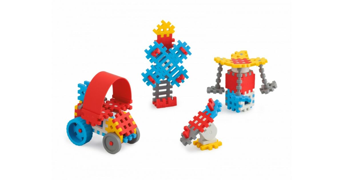 Acest set de construcție colorat, cu 70 de piese, oferă ore întregi de distracție și dezvoltare pentru copilul tău! Elementele de diferite forme permit crearea a numeroase structuri imaginative. Stimulează creativitatea, gândirea logică și abilitățile motorii fine.