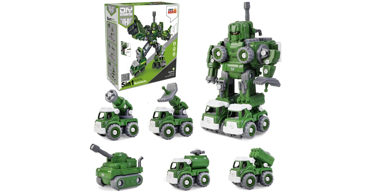 Robot Transformator Militar 5 în 1: Jucărie de Asamblare cu 137 de Piese 🤖