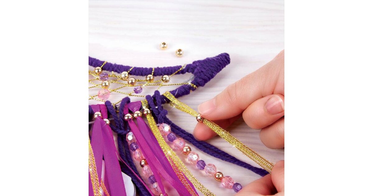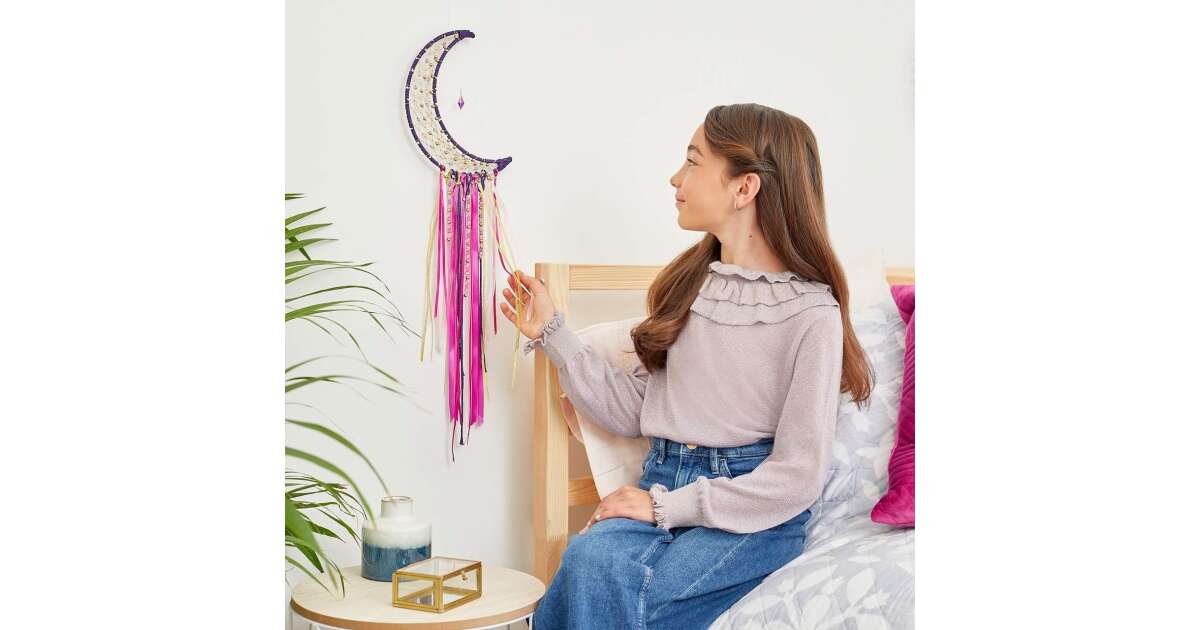 Confecționează-ți propria prinzătoare de vise unică, în formă de lună, cu acest set creativ! Nu este doar un decor minunat, ci te ajută și să alungi visele urâte. Găsești toate materialele necesare în cutie, ca să poți începe creația imediat.