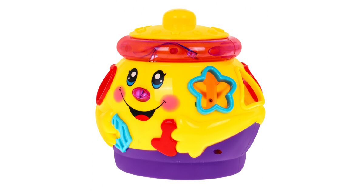 Această oală de jucărie veselă și colorată este alegerea perfectă pentru copiii de peste 18 luni! Un joc de sortare a formelor și funcții interactive într-unul singur! Cei mici își pot dezvolta abilitățile motorii fine introducând elemente de diferite forme și culori, în timp ce melodii vesele și lumini îi distrează. Datorită spațiului de depozitare încorporat, elementele de joc vor fi întotdeauna la îndemână. Conform părerilor clienților, produsul are un raport calitate-preț excelent și toată lumea îl adoră.