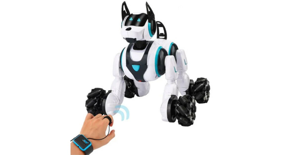 - Telecomandă cu Gesturi: Controlează cățelul cu mișcări ale mâinii, folosind telecomanda tip "ceas".