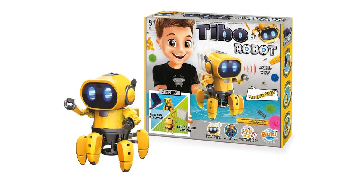 Pregătește-te pentru robotul Tibo, un robot cu 6 picioare super tare, pe care îl poți construi chiar tu! Are două moduri fantastice de funcționare, pentru o distracție și mai mare.