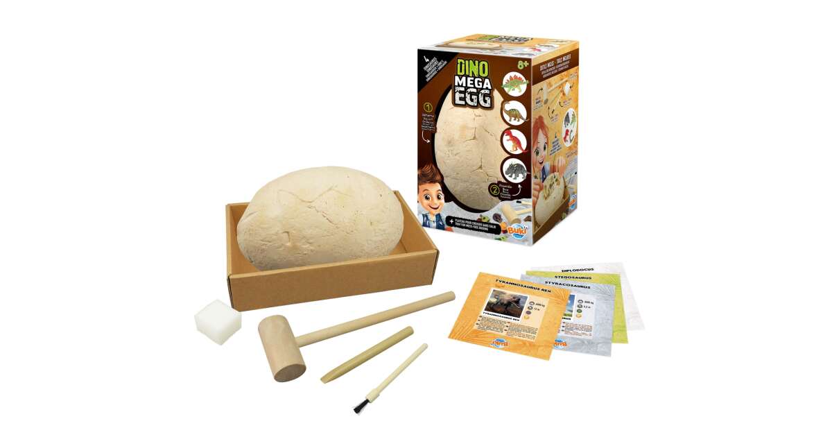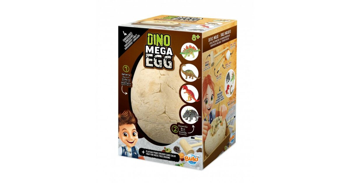 Pregătește-te pentru o aventură paleontologică palpitantă cu BUKI Ouă Mega Dino! Acest ou uriaș de 20 cm ascunde 4 dinozauri pe care îi poți dezgropa singur cu uneltele de arheolog incluse. Dinozaurii sunt bucăți, așa că după dezgropare te așteaptă o altă provocare: să-i pui cap la cap!