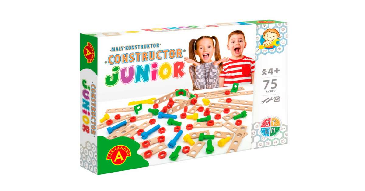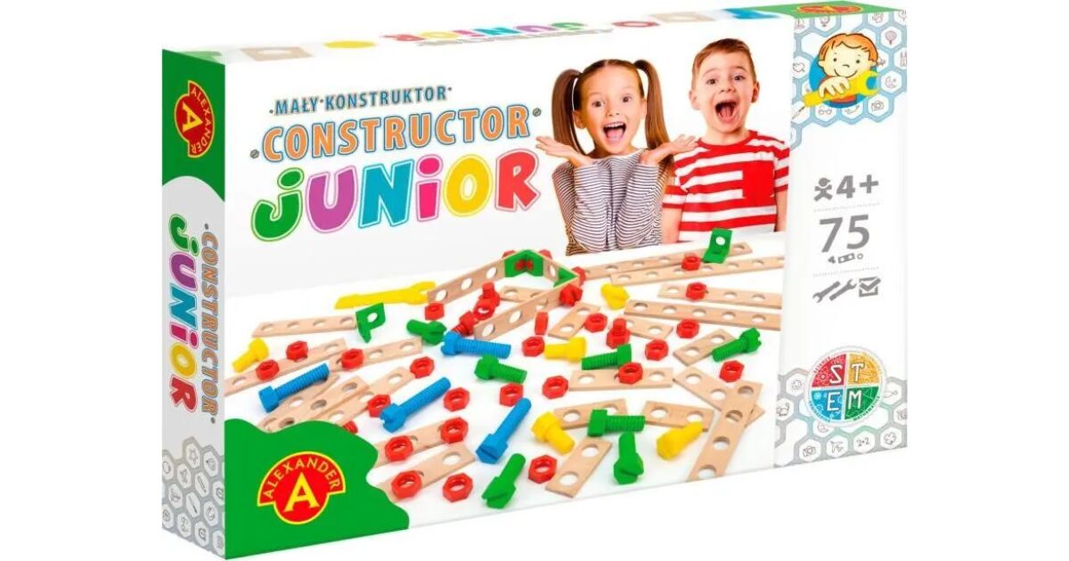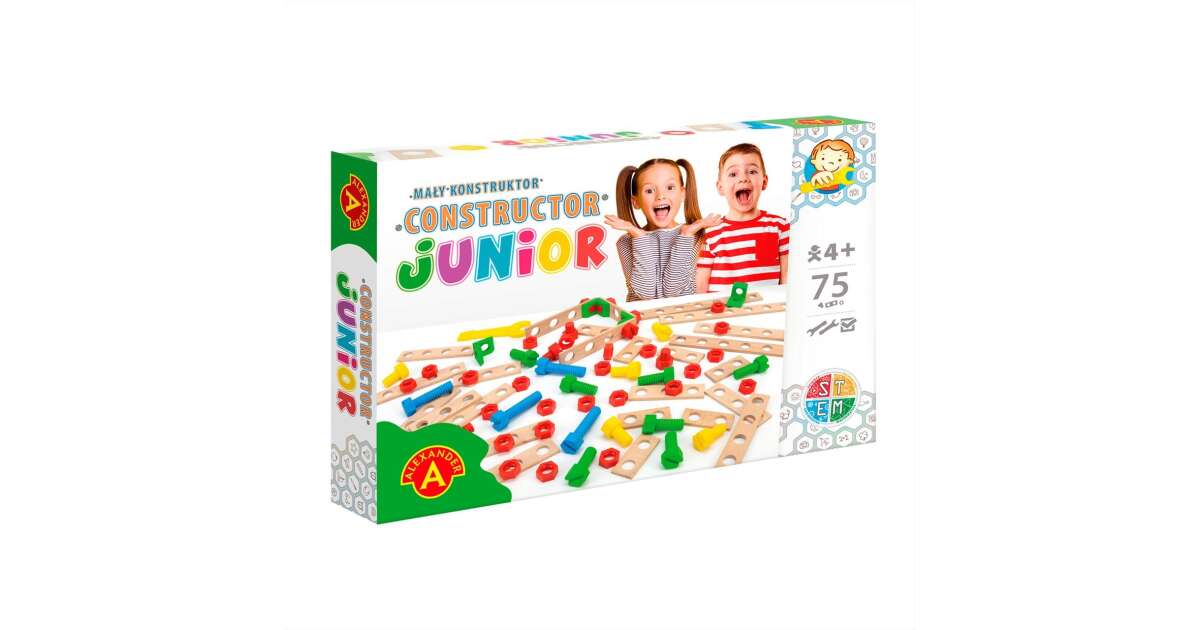 Cu setul de construcție Alexander Constructor Junior, care conține 75 de piese, copiii își pot dezvolta creativitatea și îndemânarea. Cu ajutorul elementelor colorate din lemn și a șuruburilor și piulițelor din plastic, cei mici pot construi mașini, case sau orice își pot imagina.