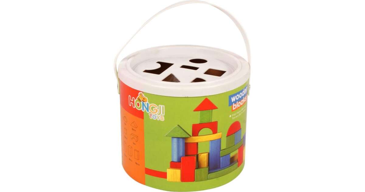 Blocuri de construcție într-un cilindru de sortare a formei, un set de 30 de piese Descriere