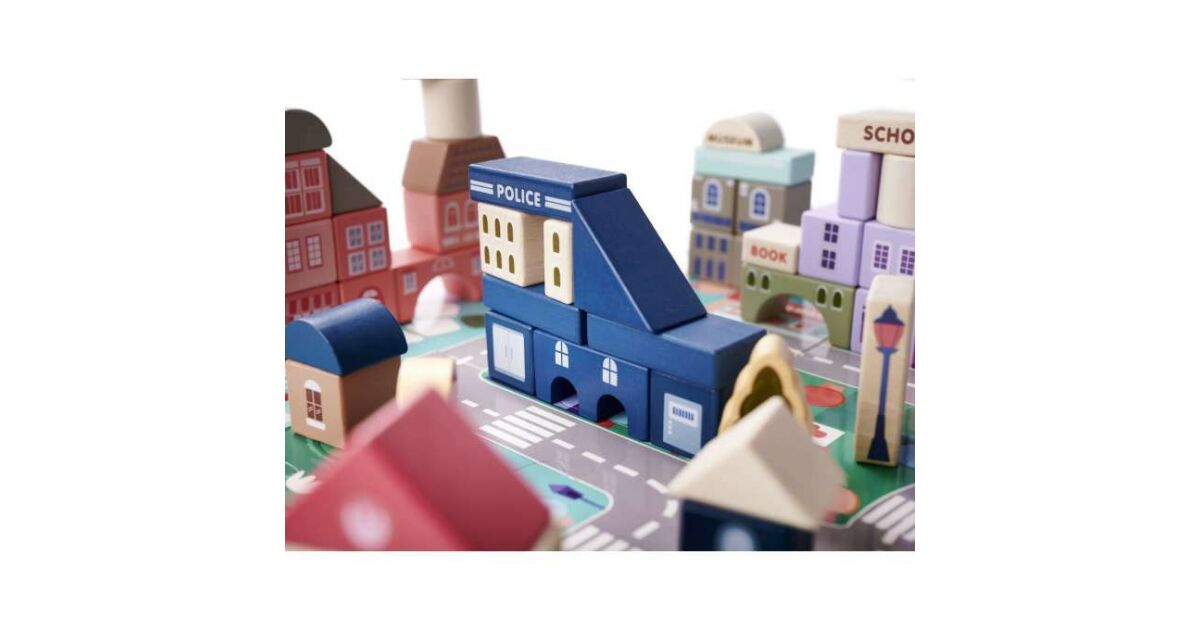 Acest joc de construcție din lemn, cu 135 de piese, oferă o mulțime de oportunități pentru joacă creativă și dezvoltarea imaginației. Micii și marii se vor bucura deopotrivă construind clădiri, vehicule și figurine colorate și detaliate.