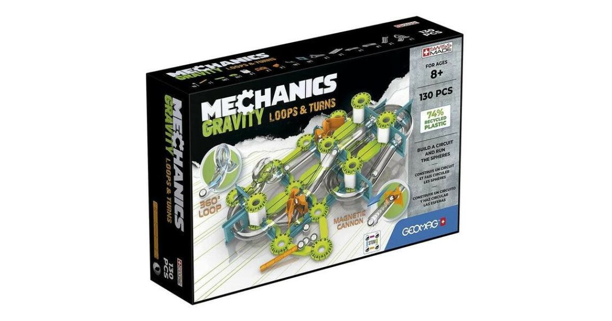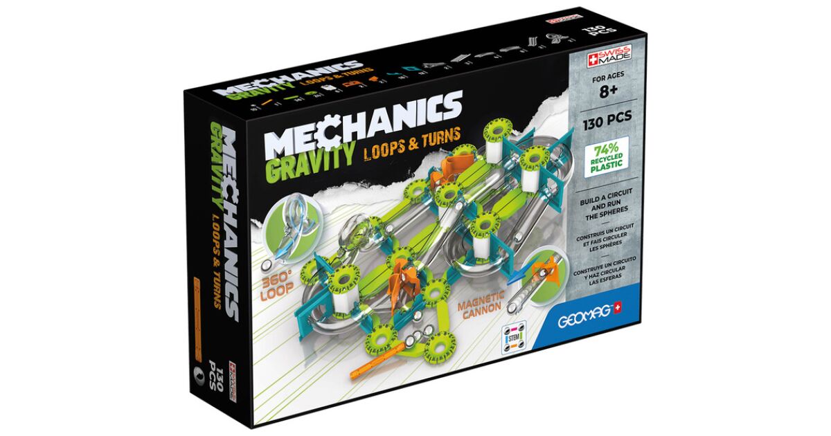 Geomag Mechanics Gravity Loops & Turns: Set de construit circuite cu bile magnetice - 130 de piese 🧲