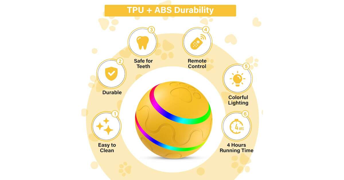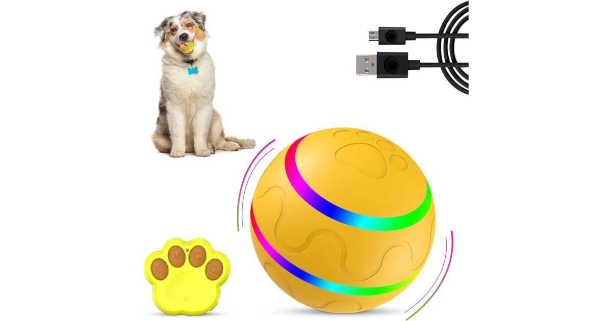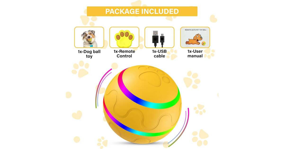 Jucarie Smart Minge Interactiva Inteligenta pentru Caini si Pisici cu Rotire 360° Automata si cu Telecomanda, Rezistenta la Apa, Diametru 8 cm, Galben Descriere