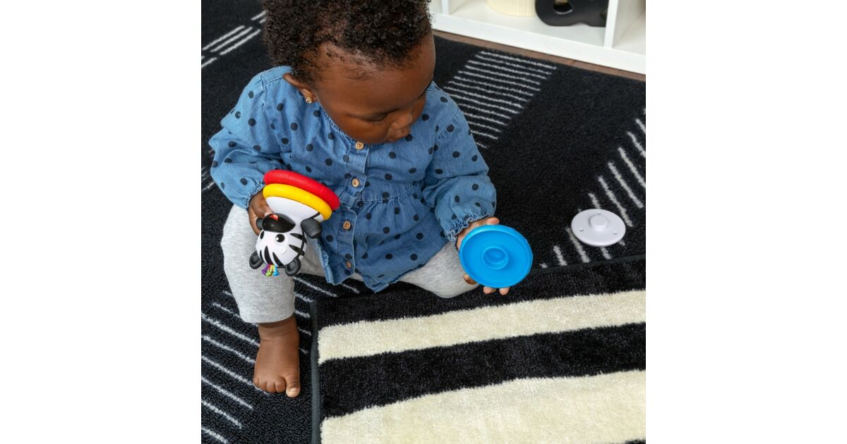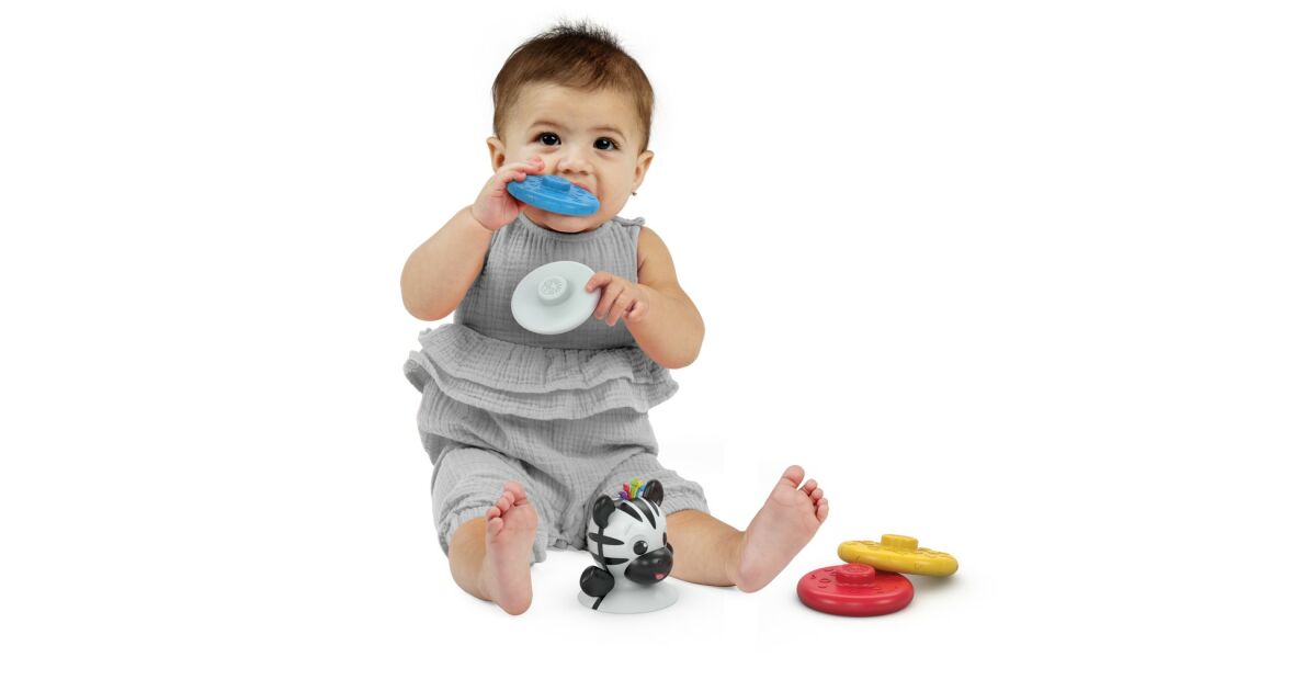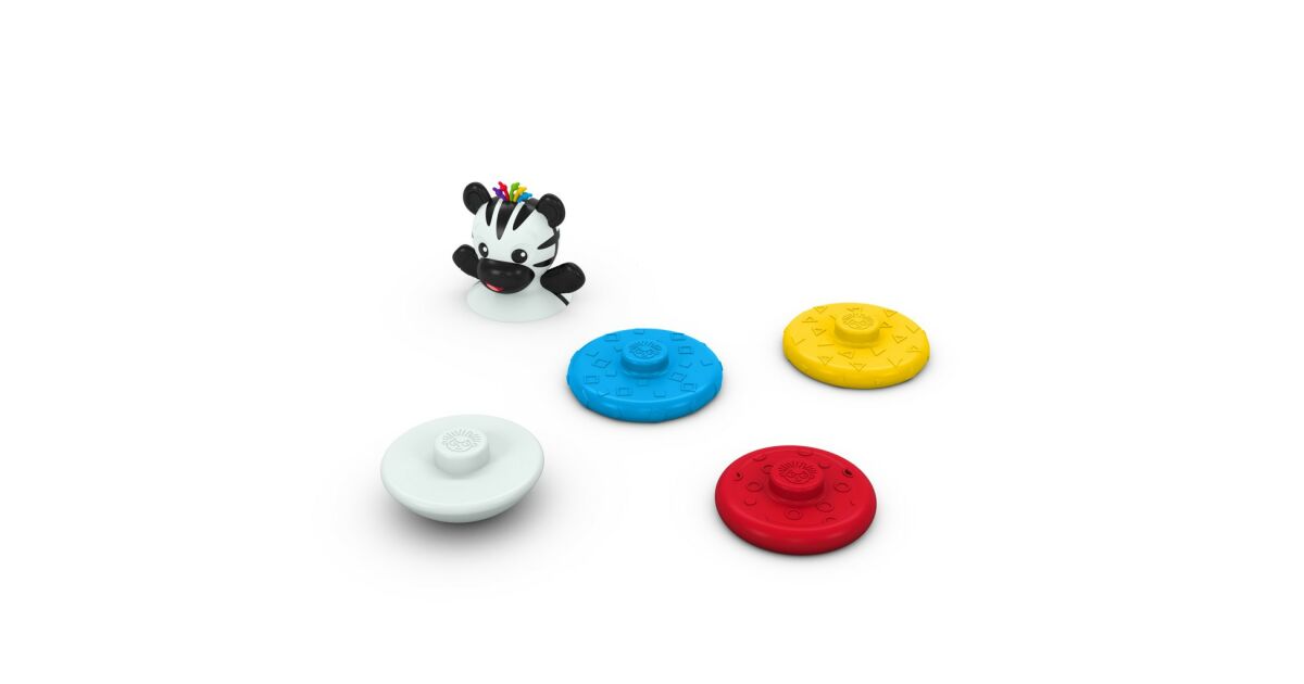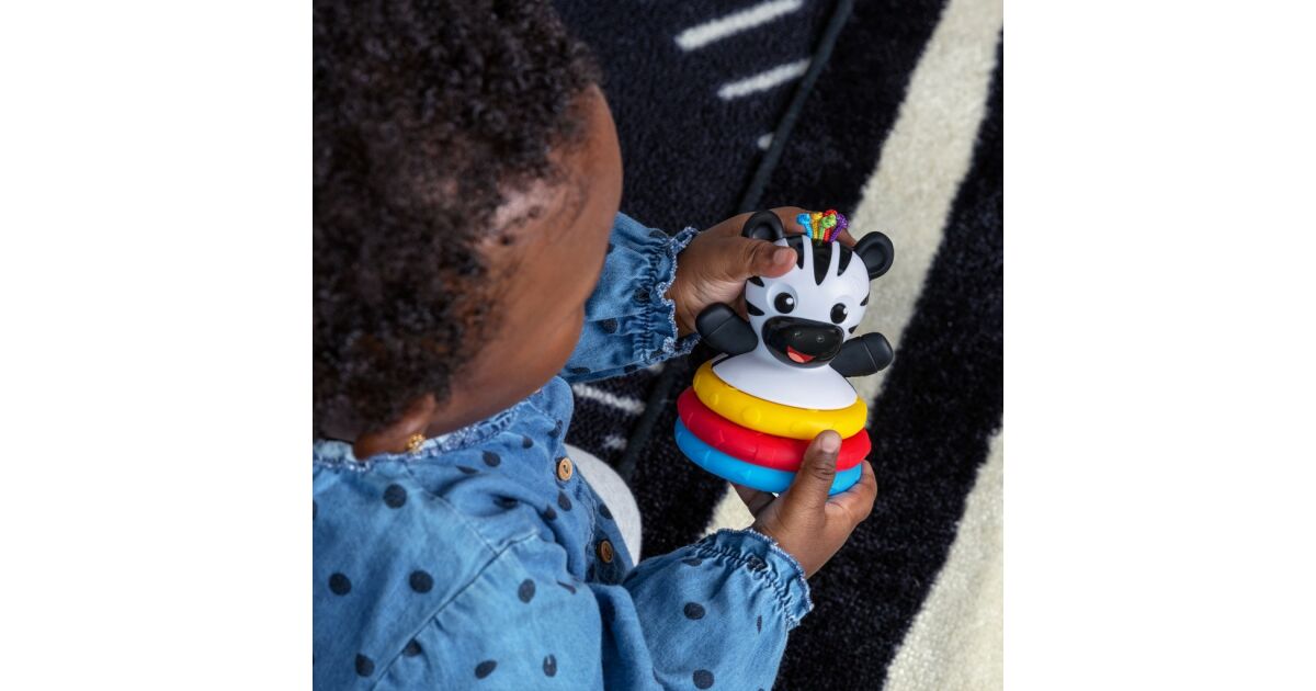 Cunoscut în emisiunile și cărțile Baby Einstein ca Zen Zebra, bebelușilor mai mici le va plăcea să atingă recipientul pentru a-l face pe Zen să se clatine, ajutându-i să învețe cauza și efectul. Cele 4 discuri detașabile îi ajută pe copiii mai mari să învețe culorile de bază, să numere și să stivuiască.