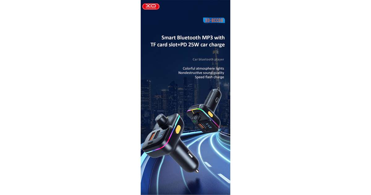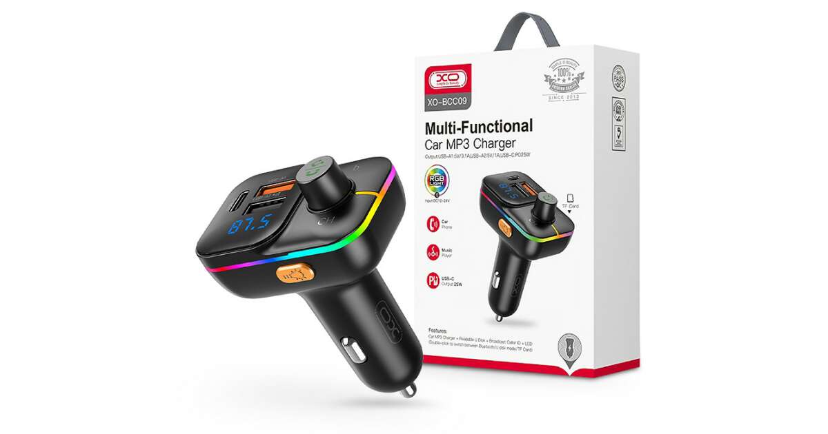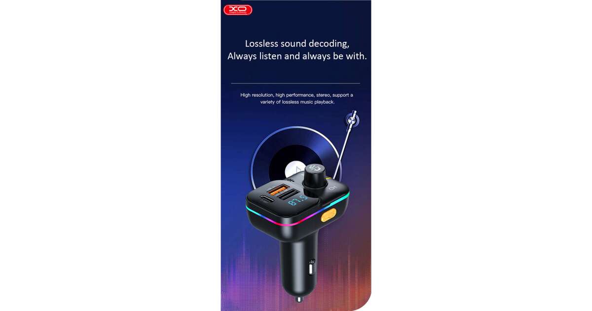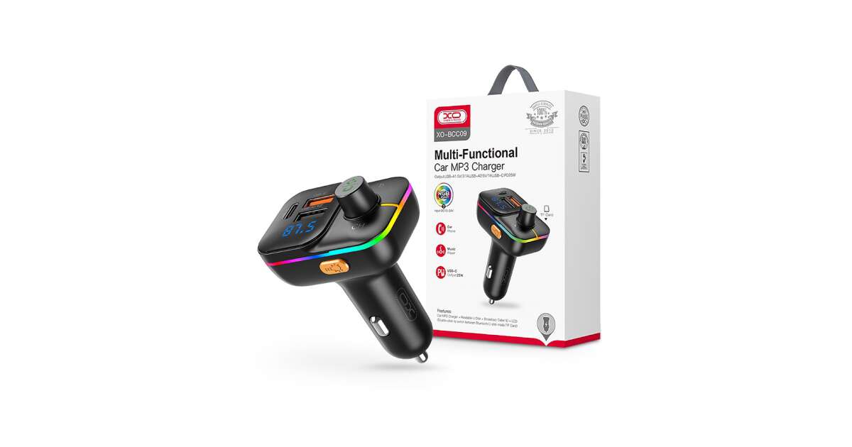 Modulator FM Bluetooth XO Design BCC09, 2 X USB-A - 1 X USB C - MicroSD Descriere