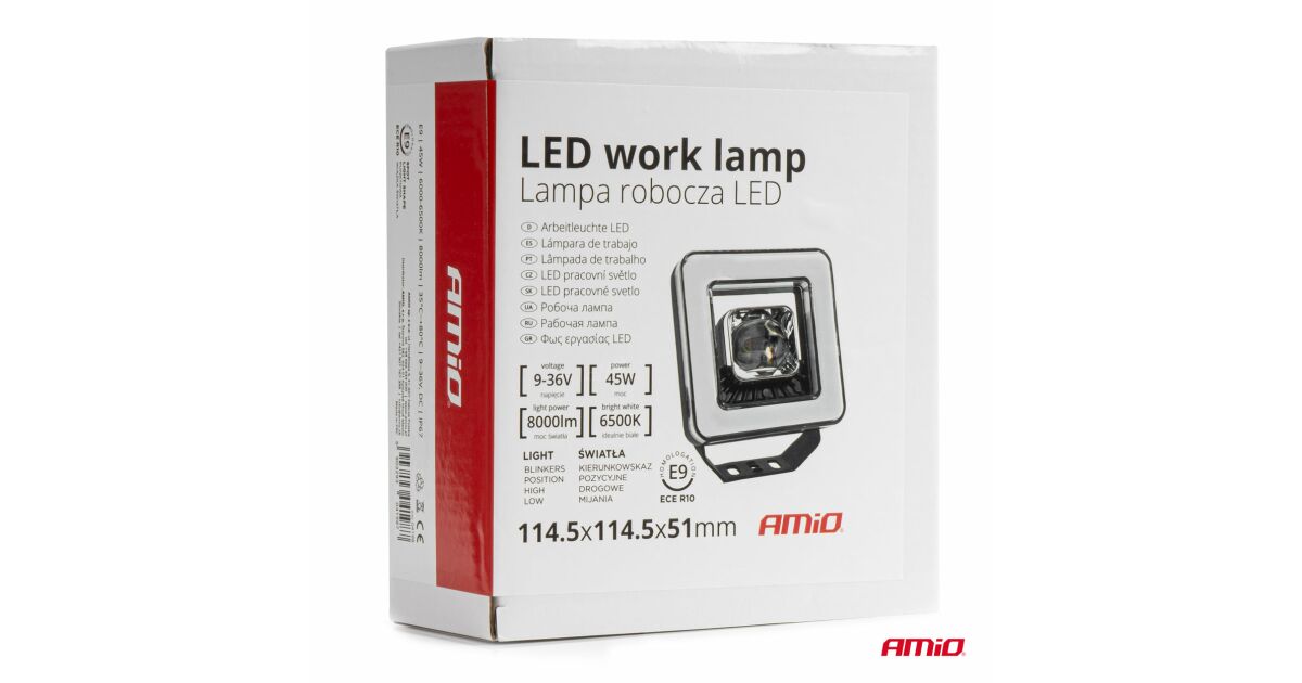Proiector LED cu Angel Eye model AWL57, pozitie, semnalizare, faza lunga/scurta, pentru Off-Road, ATV, SSV, putere 45W, 8000lm, tensiune 9-36V, dimensiuni 114,5 x 114,5 x 51 mm