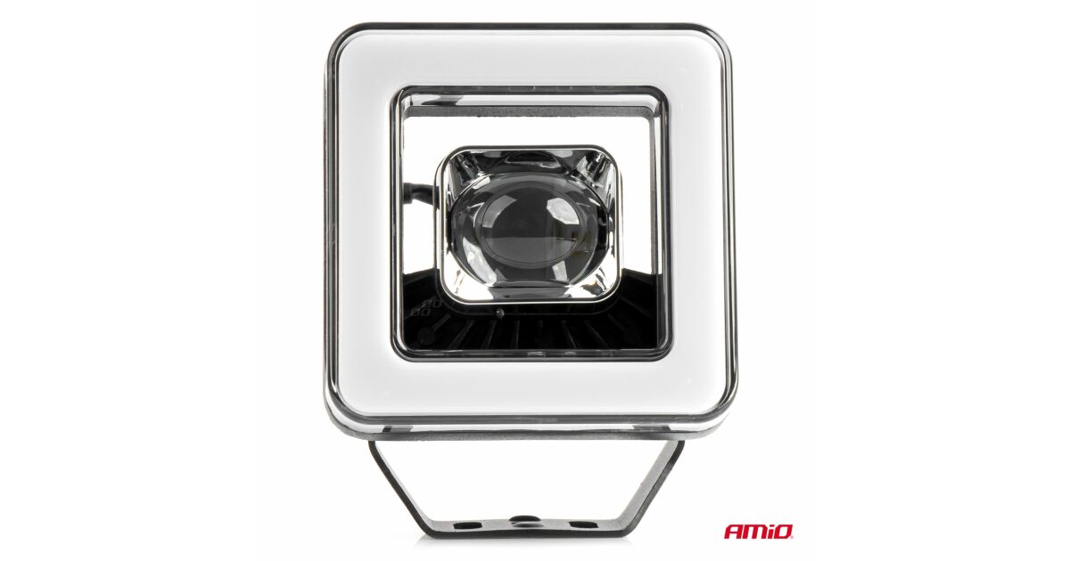 Proiector LED cu Angel Eye model AWL57, pozitie, semnalizare, faza lunga/scurta, pentru Off-Road, ATV, SSV, putere 45W, 8000lm, tensiune 9-36V, dimensiuni 114,5 x 114,5 x 51 mm Descriere