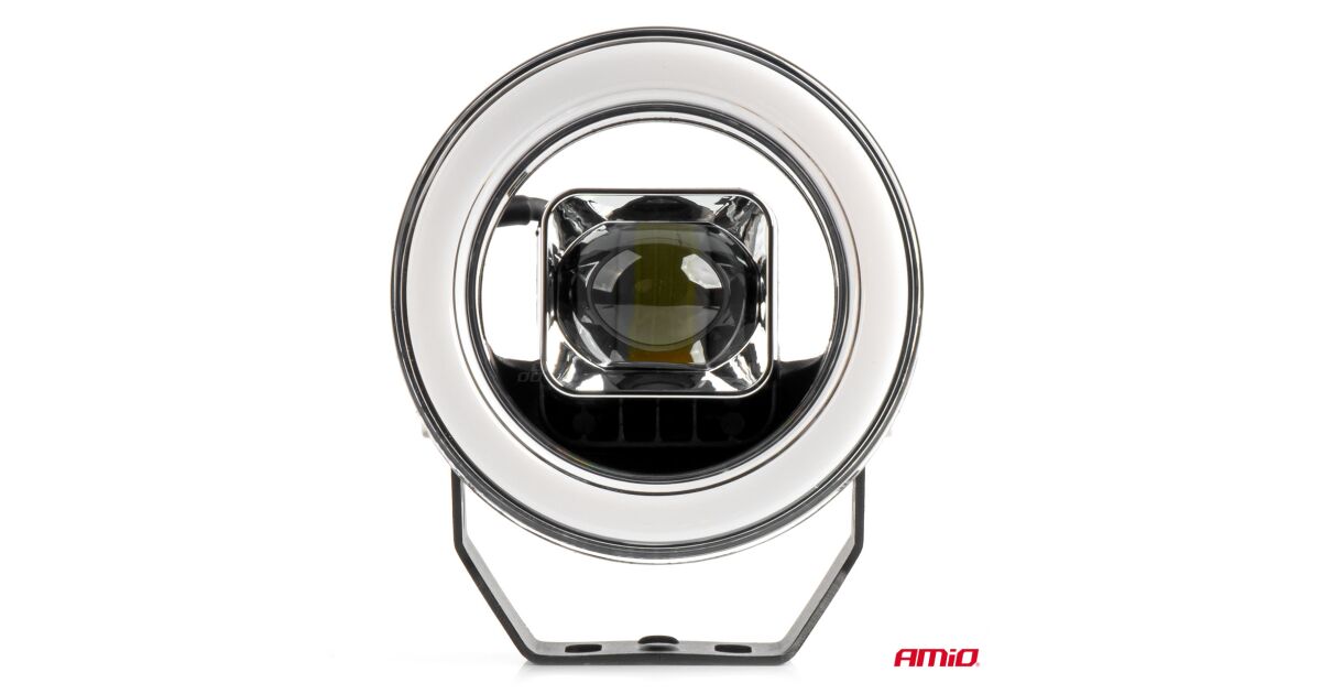 Proiector LED cu Angel Eye model AWL58, pozitie, semnalizare, faza lunga/scurta, pentru Off-Road, ATV, SSV, putere 45W, 8000lm, tensiune 9-36V, dimensiuni 114,5 x 114,5 x 52 mm Descriere