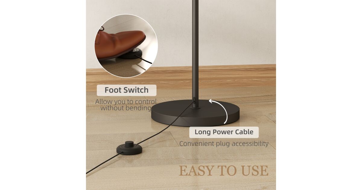 - Întrerupător de picior: Cu întrerupătorul de picior, poți porni și opri ușor lampa.