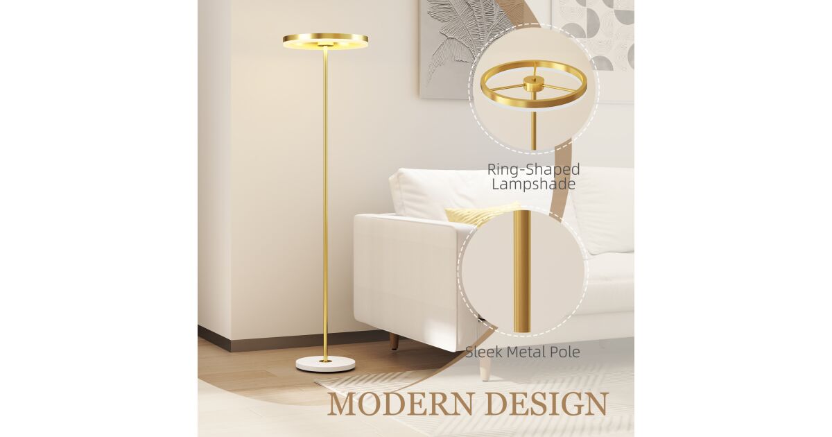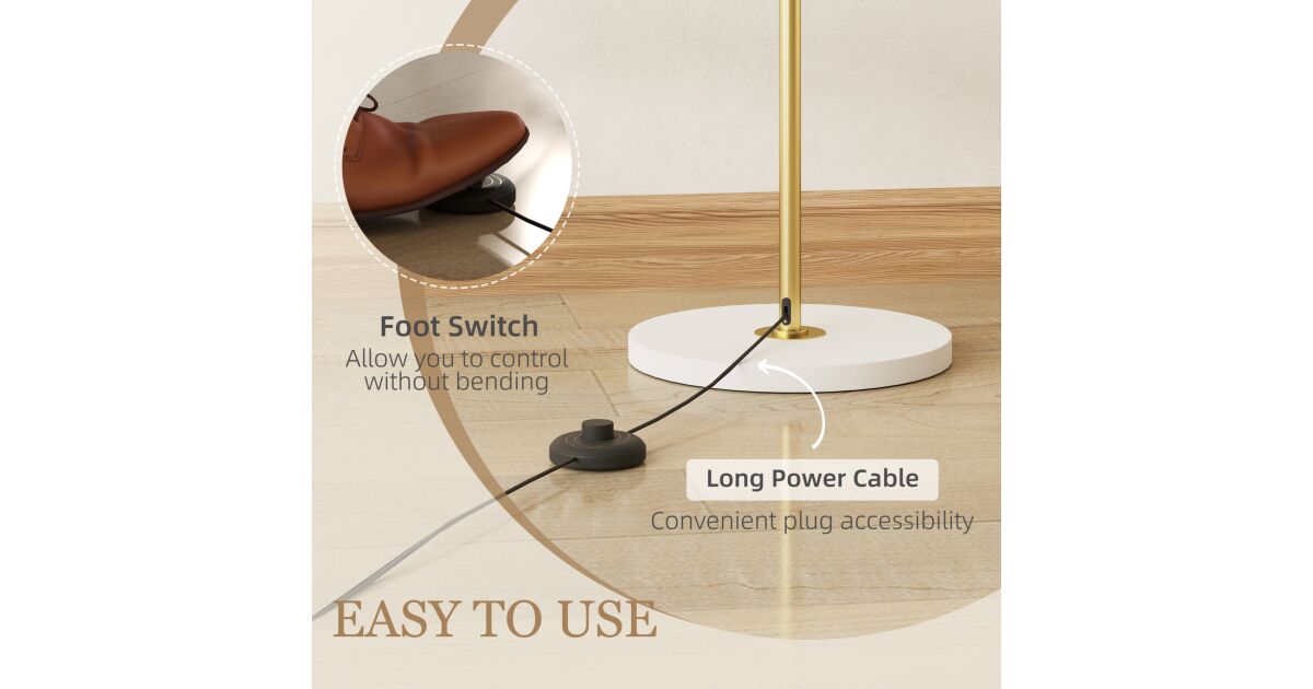 Lampadarul modern HOMCOM este alegerea perfectă dacă dorești o iluminare unică și plăcută în casa ta. Culoarea aurie elegantă și designul simplu oferă oricărei încăperi un aspect rafinat. Lampa are 3 niveluri de intensitate luminoasă, pe care le poți regla cu ușurință cu întrerupătorul de picior.