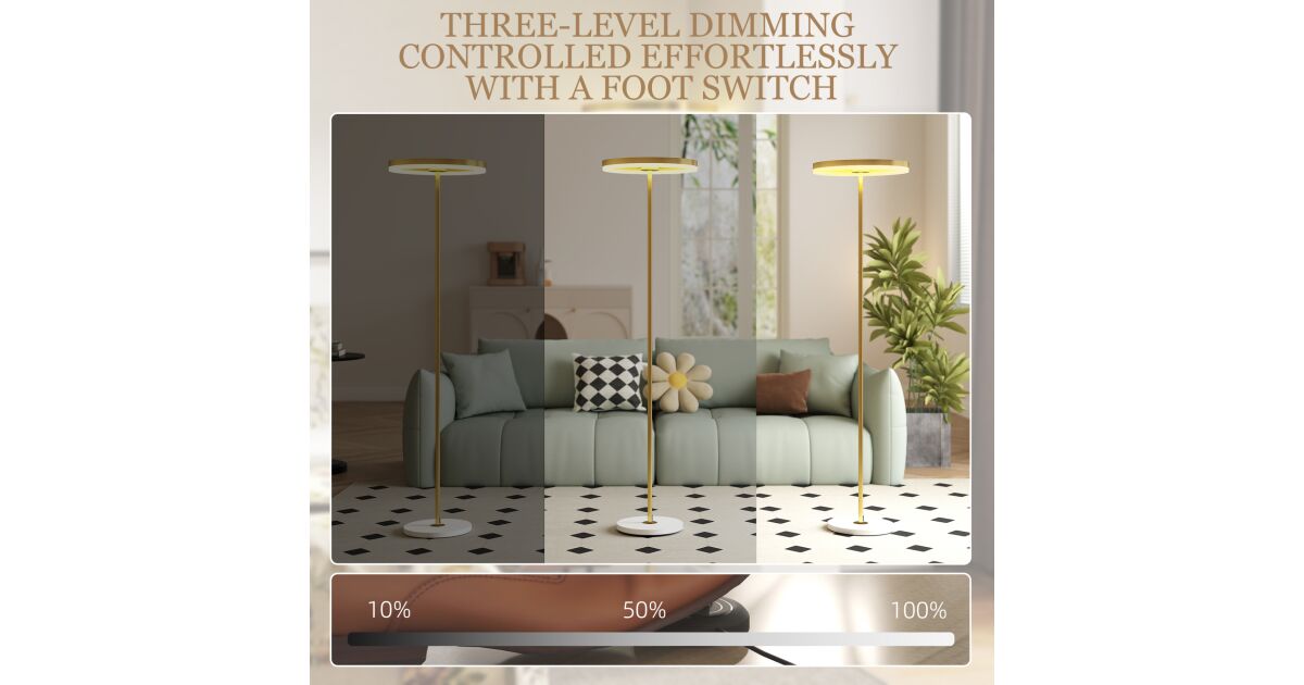 HOMCOM Lampă de Podea Modernă Dimabilă Întrerupător Pedală 3 Luminozitate Aurie Descriere