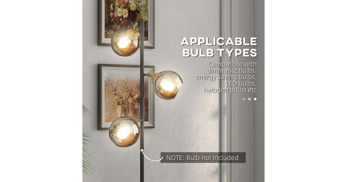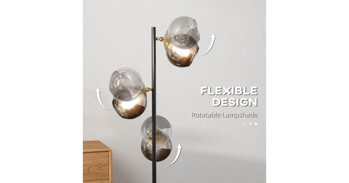 Homcom Lampa Podea cu 3 Lumini – Moderna cu Abajur Glob Descriere