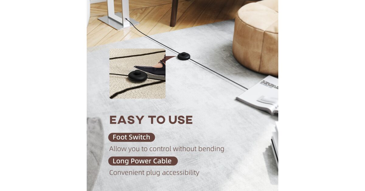 - 👣 Comutator de picior comod: Cu ajutorul comutatorului de picior, poți porni și opri cu ușurință lampa, precum și regla intensitatea luminii fără a te apleca.