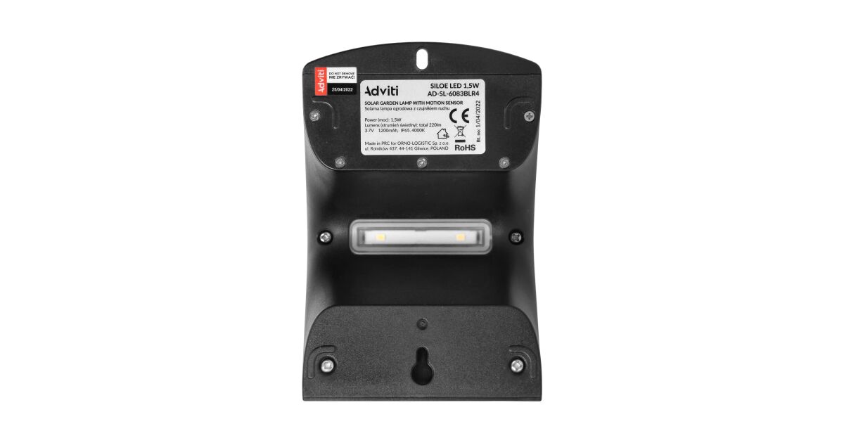 Lampa solara ADVITI Siloe AD-SL-6083BLR4, 1.5 W, senzor de miscare, unghi de detectie 120°, 190lm, IP65, 4000K, 1200mAh, negru Descriere