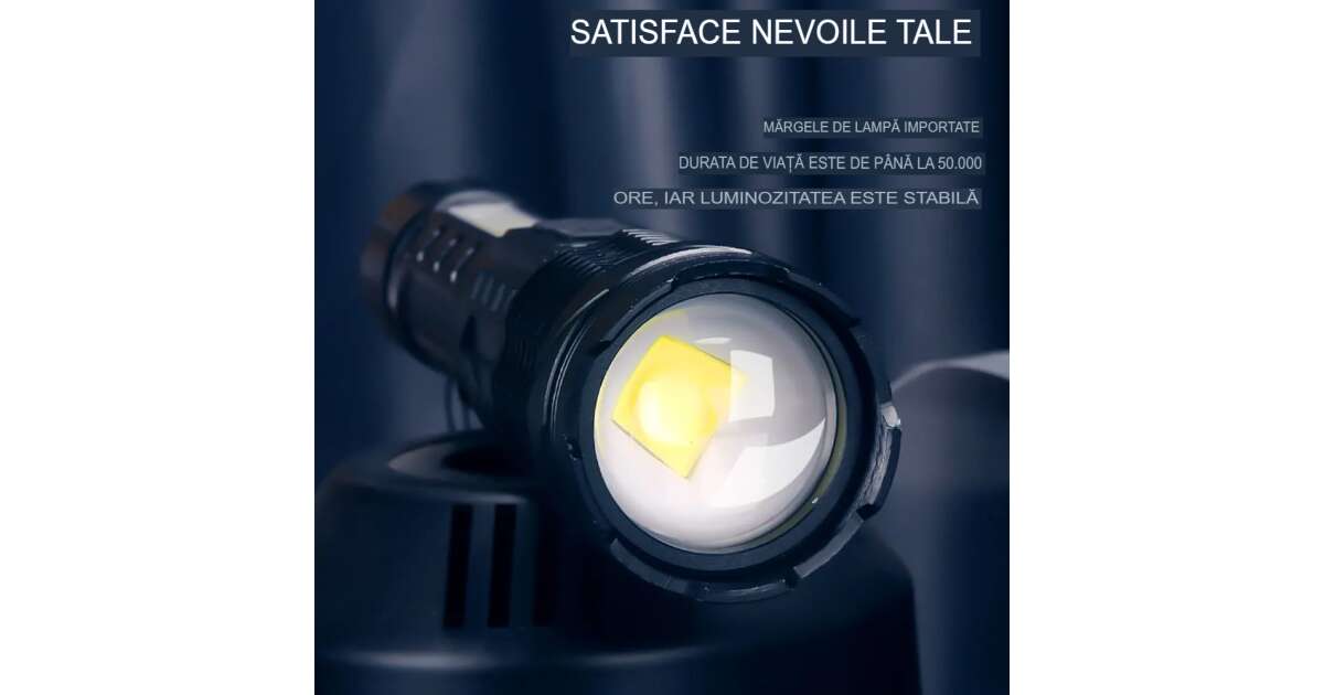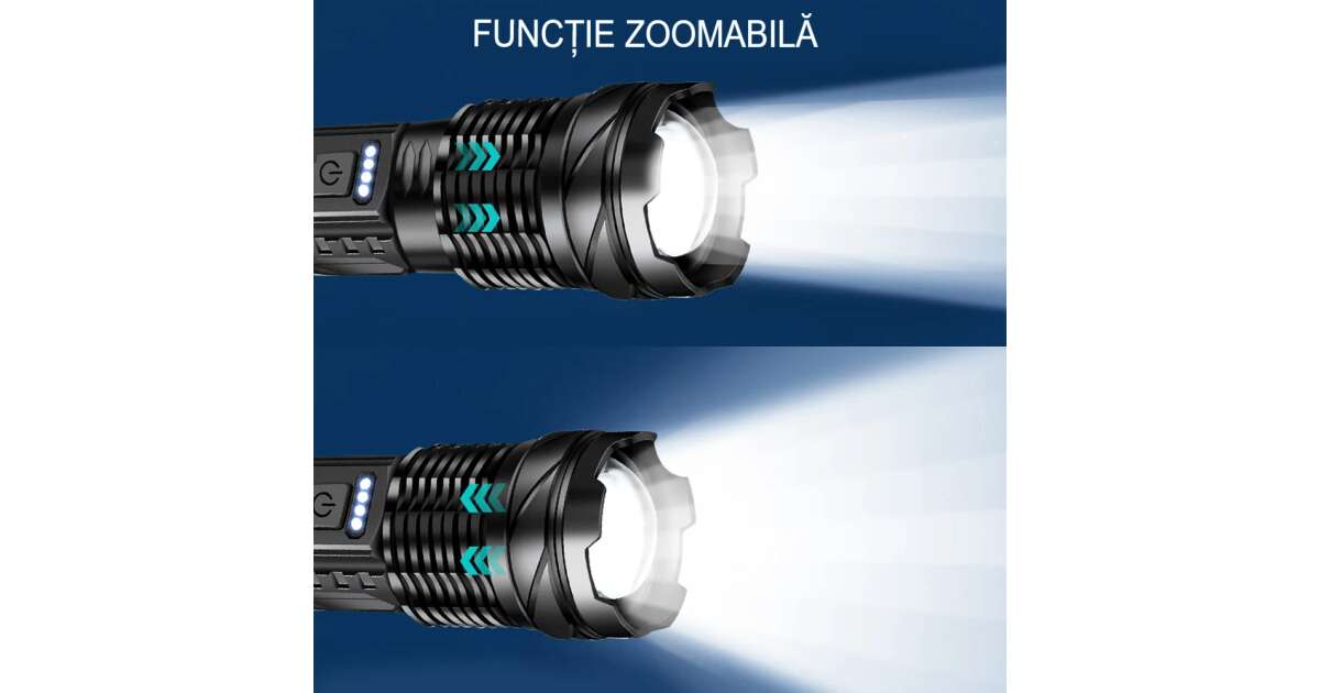- Zoom și focalizare: Ajustează fasciculul luminos în funcție de nevoile tale.