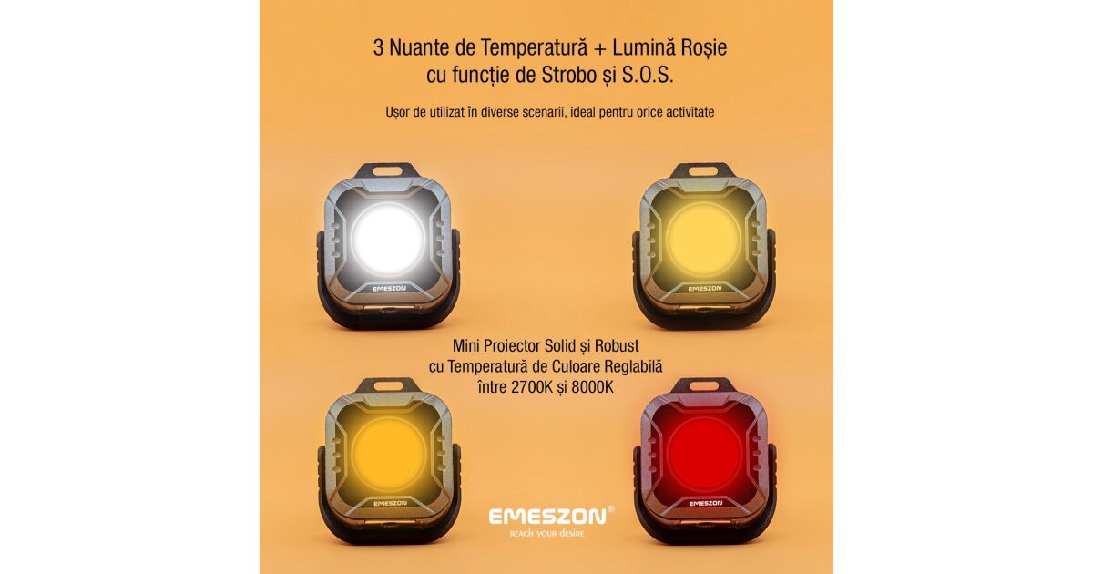- Lumină roșie SOS: Poate fi folosită ca semnal intermitent în situații de urgență.