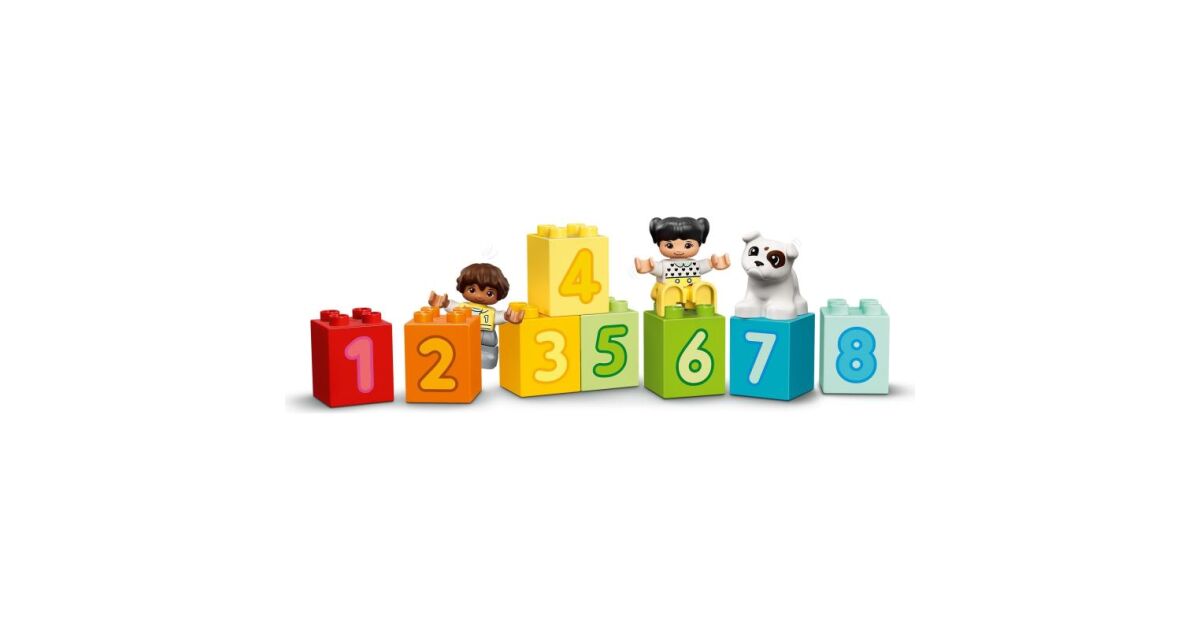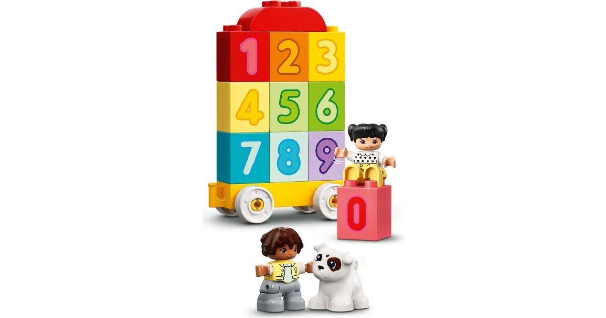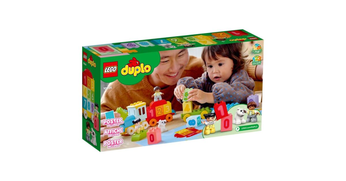 Prinde noul si coloratul LEGO® DUPLO® (10954) Primul meu Tren cu numere - Învata sa numeri. Cu 10 caramizi numerice pe care copilasii le pot incarca, descarca, stivui si sorta, plus figurine DUPLO fetita, baiat si caine, distractia jocului si a invatarii nu se termina niciodata. Prezentarea perfecta a numerelor pentru prescolari Copilasii pot pune caramizile numerice in vagoane, le pot descarca, alinia in ordinea corecta si le pot construi impreuna pentru a forma un zid numeric. Cu roti in miscare, un acoperis care se poate deschide si personaje DUPLO prietenoase pentru a impartasi distractia, Trenul cu numere va transporta copilasul intr-o lume a jocului imaginativ de dezvoltare! Jucarii educative practice pentru copilasi Jucariile LEGO DUPLO pun in mainile prescolarilor distractia cu final deschis, exprimarea de sine si invatarea cu bucurie. Cu seturile de joc DUPLO, parintii si copilasii pot impartasi etape pretioase de dezvoltare construind impreuna. Fa primii pasi alaturi de copilul tau in lumea numerelor cu LEGO DUPLO Trenul cu numere Învatam sa numaram (10954). Aceasta versiune noua a indragitului Tren cu numere ofera mai multa distractie in culori si mai vesele! Include 10 caramizi cu numere care pot fi transportate in vagoanele trenului, plus figurine cu un baiat, o fata si un caine LEGO DUPLO pentru a inspira imaginatia in momentul jocului. Copiii isi vor imbunatati abilitatile motorii fine in timp ce conduc trenul si folosesc caramizile numerotate. Pe masura ce exploreaza toate posibilitatile de joaca ei vor descoperi si vor invata si despre culori si numere. Cu personajele sale adorabile si caramizile colorate si usoare de manevrat, Trenul cu numere este ideal pentru copiii cu varsta de minim 18 luni. Acest tren de jucarie LEGO DUPLO masoara peste 31 cm inaltime, 79 cm latime si 20 cm lungime, dar poate fi aranjata in moduri diferite si combinata cu alte jucarii LEGO DUPLO. Setul include si un poster/suprafata de joc, cu ilustratii la scara naturala care arata cum se asambleaza piesele pentru a forma trenul. Toate seturile de joaca LEGO DUPLO sunt concepute de catre experti, folosind piese colorate create special pentru mainile mici si facute sa poata fi manevrate in siguranta, fara riscuri.
