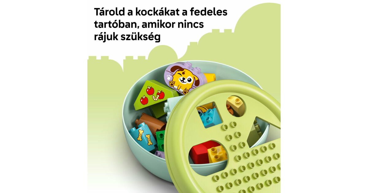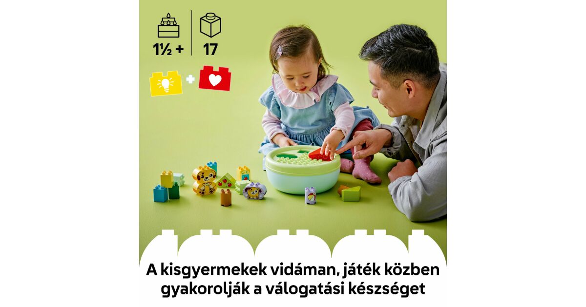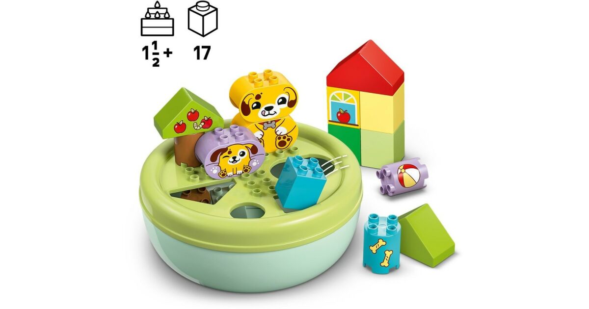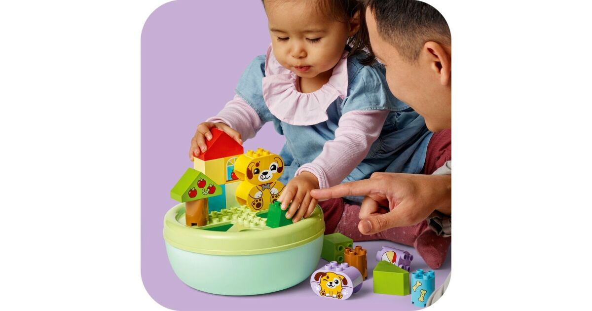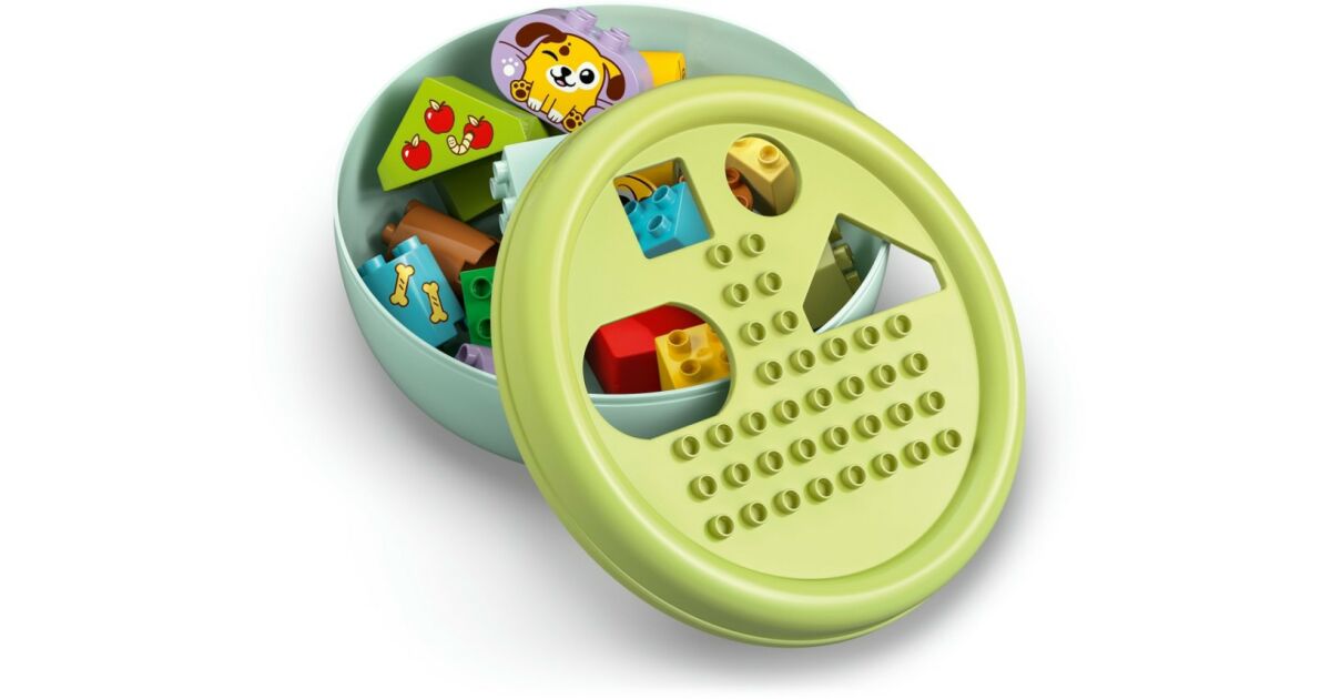 Caracteristici: - Joc de recunoaștere a formelor pentru copiii mici iubitori de câini - Încurajați dragostea preșcolarilor pentru cățelușul lor cu jocul pentru copii mici Shape Picker: Dog House și ajutați-i să învețe despre forme prin joacă! - Un joc care dezvoltă abilitățile motorii fine cu de două ori mai multă distracție - Utilizați cele 4 forme diferite de cuburi colorate pentru a construi o zonă de joacă pentru căței, apoi demontați construcția și potriviți cuburile în fantele din partea de sus a bolului pentru câine - Activități de dezvoltare pentru distracție în familie - Părinții îi pot învăța pe cei mici despre diferitele forme în timp ce copiii construiesc câini, copaci și o casă pentru a juca povești amuzante cu simpaticii căței de jucărie - Jucărie pentru dezvoltare - Această jucărie pentru dezvoltare îi ajută pe cei mici să conștientizeze spațiul, să-și dezvolte răbdarea, perseverența și gestionarea emoțiilor în timp ce caută forme care se potrivesc în goluri - Un cadou pentru copii mici - Această jucărie LEGO® DUPLO® cu animale este un cadou de ziua de naștere minunat sau o surpriză specială pentru preșcolari și copii mici de la 18 luni în sus care iubesc câinii și jucăriile colorate, care rezolvă probleme - O mulțime de oportunități pentru o învățare jucăușă - Căutați seturi LEGO® DUPLO® (vândute separat) care au fost testate temeinic pentru a asigura o joacă sigură și pentru a satisface interesele și curiozitatea copiilor mici - Dezvoltarea abilităților, joc imaginativ - Jucăriile LEGO® DUPLO® pentru copii mici sunt concepute pentru a ajuta un copil preșcolar să atingă etapele de dezvoltare în timp ce învață într-un mod distractiv, jucăuș și captivant - Dimensiuni - Setul de 17 piese include un castron cu un diametru de 22 cm și un acoperiș
